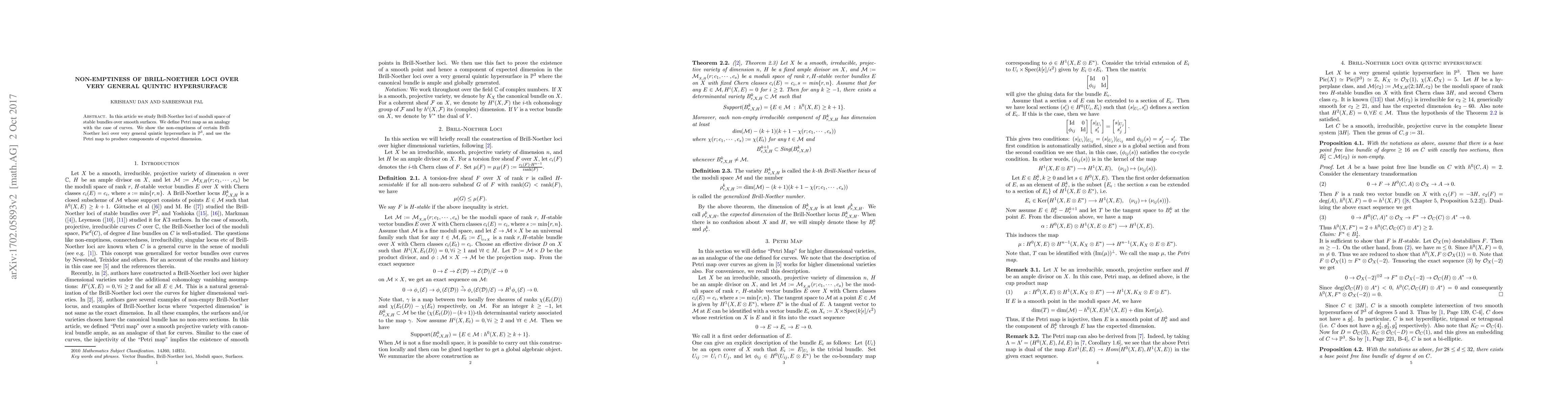 In this article we study Brill-Noether loci of moduli space of stable bundles over smooth surfaces. We define Petri map as an analogy with the case of curves. We show the non-emptiness of certain Brill-Noether loci over very general quintic hypersurface in $\mathbb{P}^3$, and use the Petri map to produce components of expected dimension.
