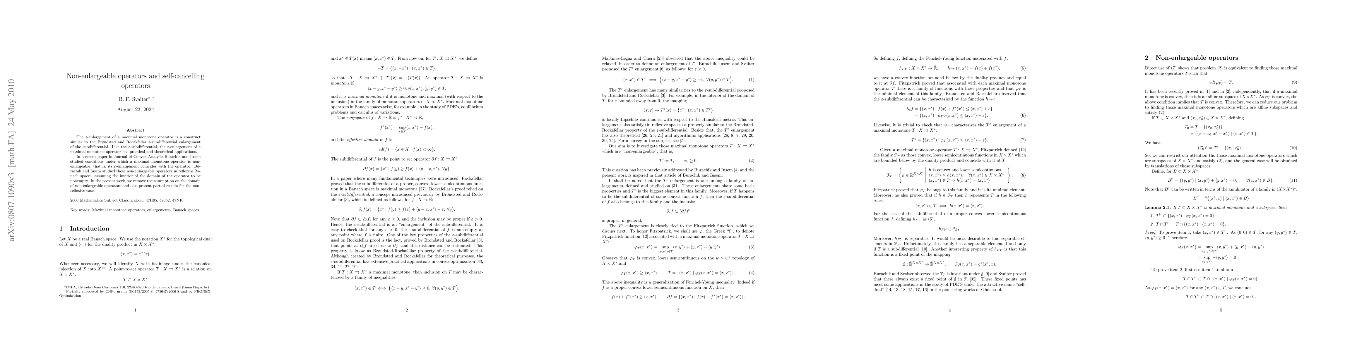 This paper explores maximal monotone operators' epsilon-enlargements, focusing on non-enlargeable operators whose epsilon-enlargement coincides with the original operator. The study extends previous work by removing the assumption of a nonempty interior domain and providing partial results for non-reflexive Banach spaces.