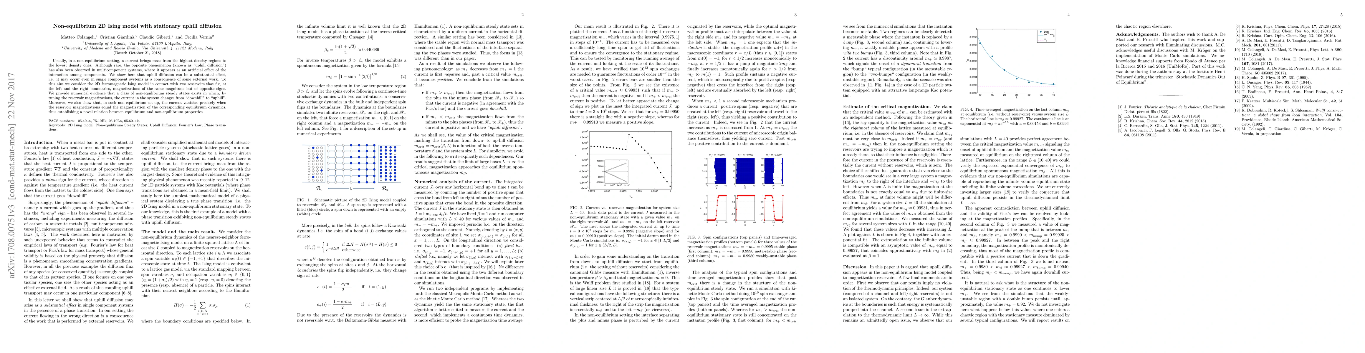 This paper investigates uphill diffusion in a non-equilibrium 2D Ising model, demonstrating that it can occur in single-component systems due to external work. It shows numerical evidence of a steady state where the current changes direction, establishing a novel link between equilibrium and non-equilibrium dynamics.