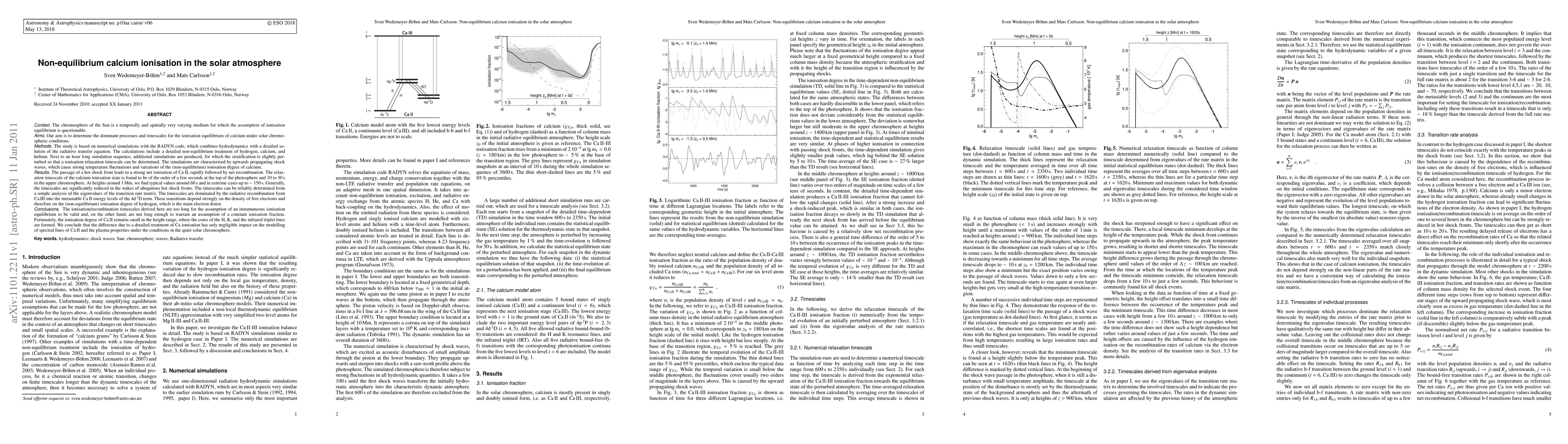 This paper investigates the non-equilibrium ionisation processes of calcium in the solar chromosphere using numerical simulations. It finds that the relaxation timescales for calcium ionisation vary from a few seconds in the photosphere to 10-30 seconds in the upper chromosphere, significantly reduced by shock waves.