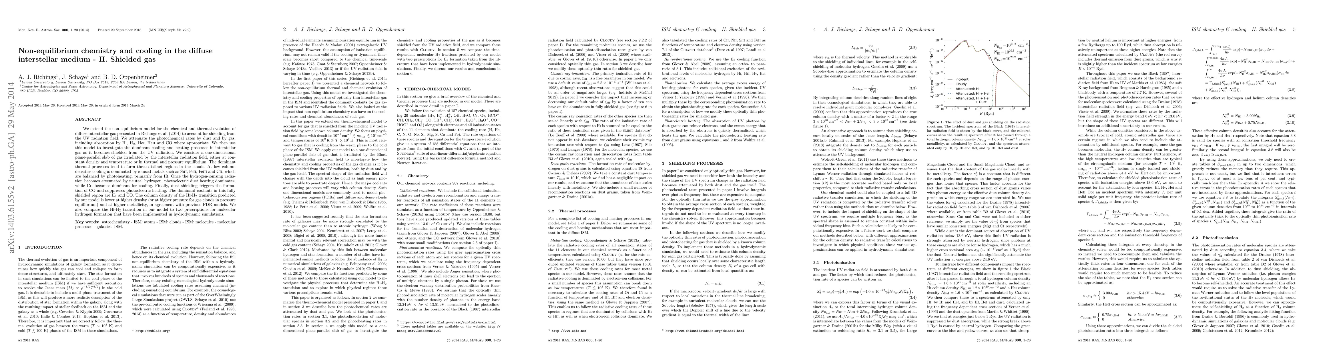 This paper extends a non-equilibrium model to study the chemical and thermal evolution of diffuse interstellar gas, focusing on the effects of UV radiation shielding. It identifies distinct cooling and heating processes in shielded gas, showing that H2 and CO become dominant coolants in fully shielded regions.