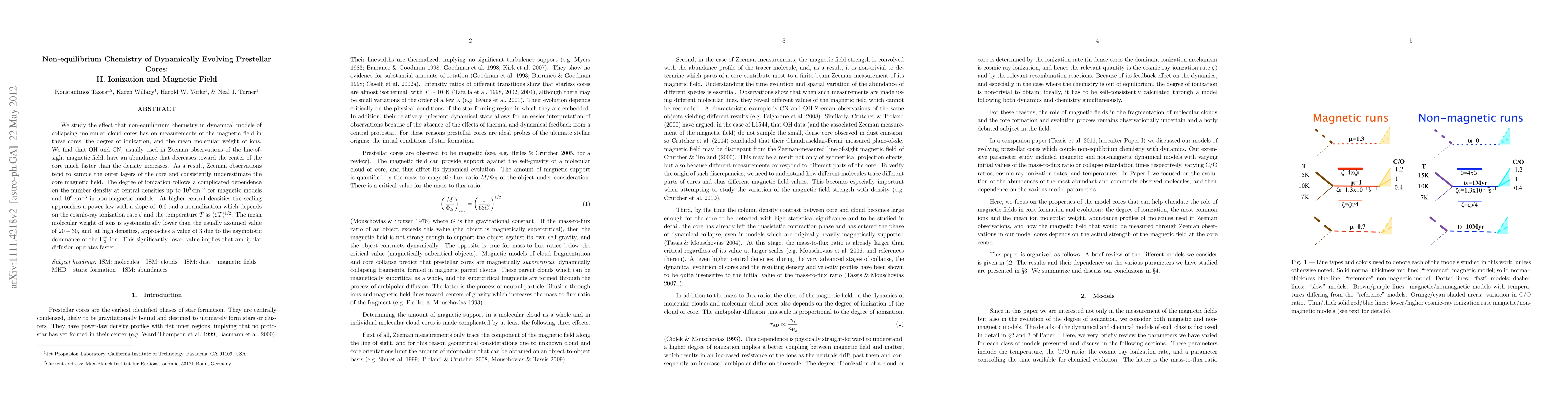 The paper presents detailed dynamical models incorporating non-equilibrium chemistry to study the evolution of molecular abundances, ionization, and mean molecular weight of ions in collapsing prestellar cores.