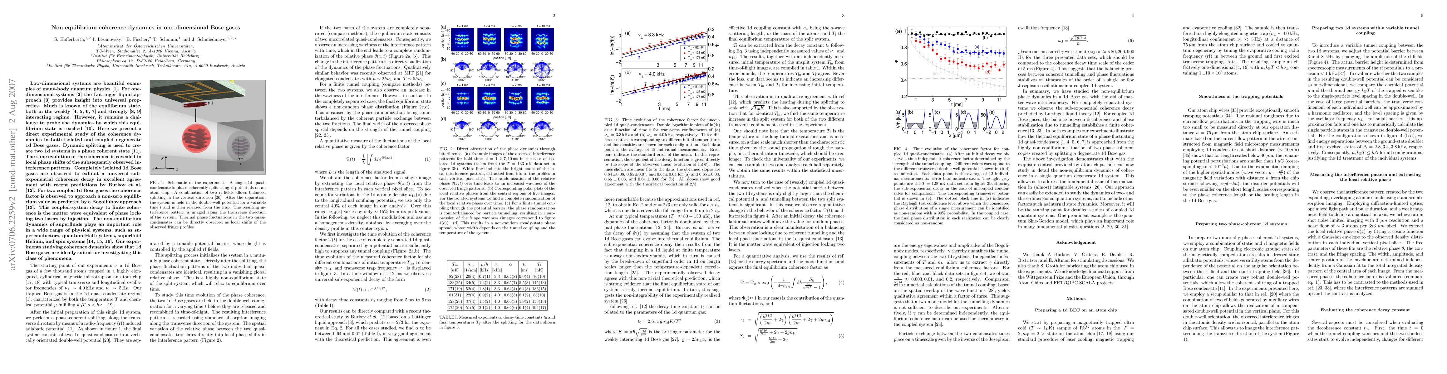 This paper investigates the non-equilibrium coherence dynamics in one-dimensional Bose gases, revealing universal sub-exponential decay in isolated systems and finite coherence in coupled systems, mirroring phase locking in lasers. The study highlights the suitability of 1d Bose gases for exploring dynamics in superfluids and related quantum systems.