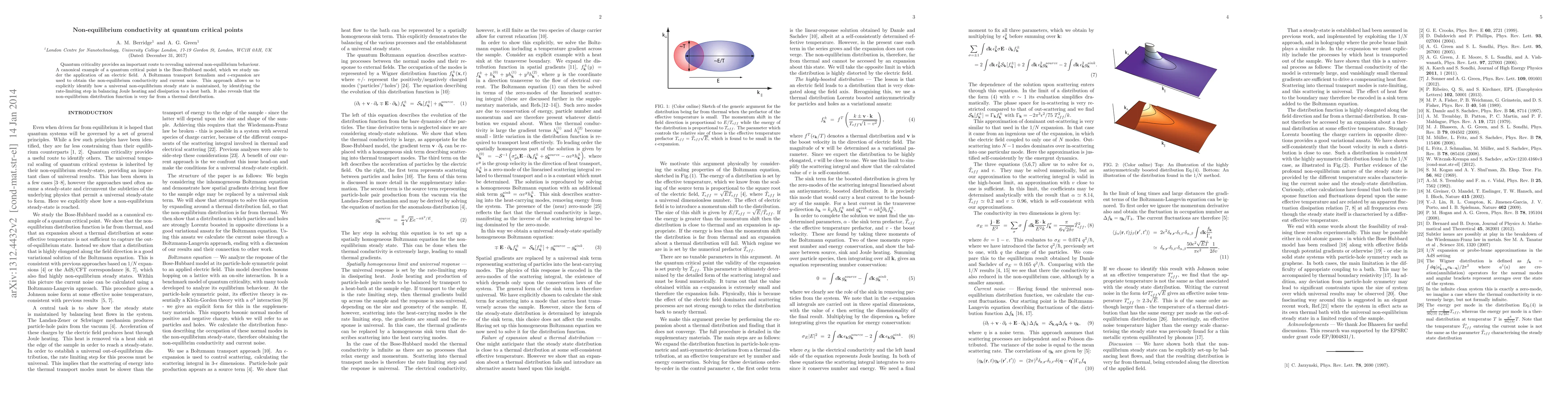The research investigates quantum criticality using the Bose-Hubbard model under electric field, deriving non-equilibrium conductivity and current noise via Boltzmann transport formalism and ε-expansion. It reveals a universal non-equilibrium steady state, pinpoints the rate-limiting step in balancing Joule heating and dissipation, and shows that the non-equilibrium distribution function deviates significantly from thermal equilibrium.