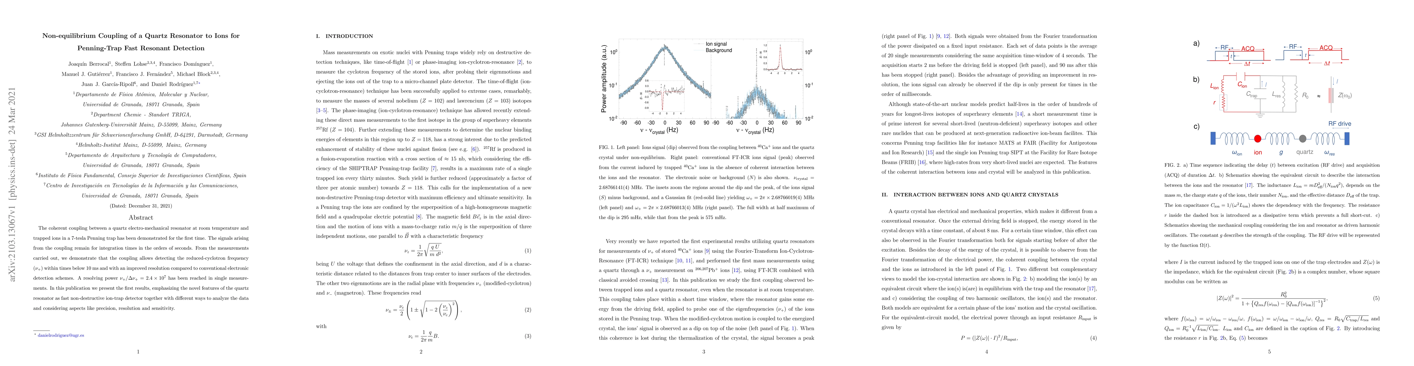Researchers successfully coupled a quartz resonator to trapped ions in a Penning trap, enabling fast non-destructive detection of ions with improved resolution, achieved in under 10ms.