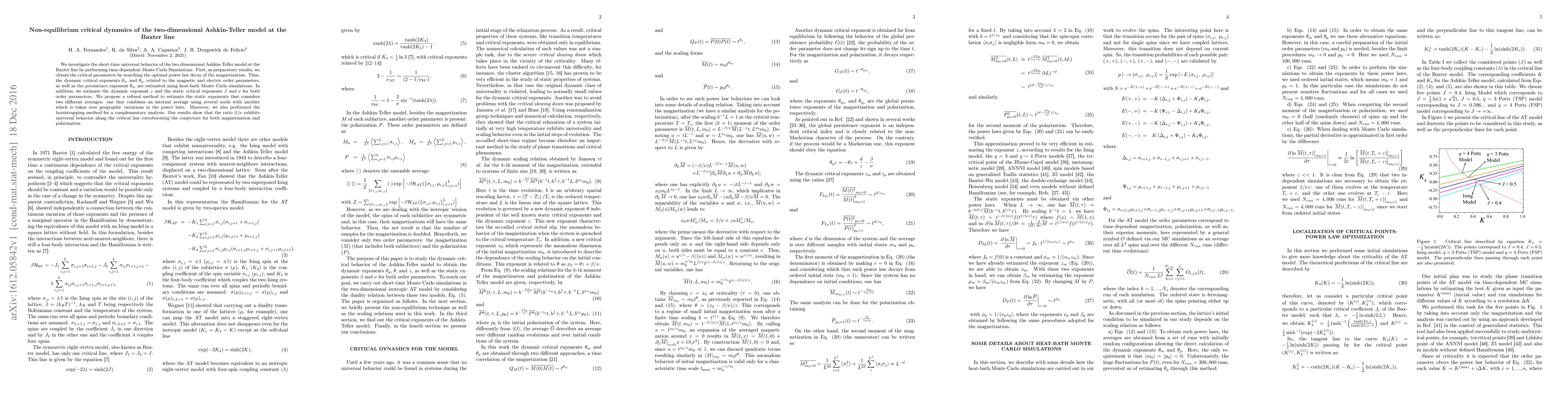 This research uses Monte Carlo simulations to study the short-time dynamics of the two-dimensional Ashkin-Teller model at the Baxter line, estimating various critical exponents. It introduces a refined method for estimating static exponents and confirms the universal behavior of the ratio u03bdu207b/u03bdu2074 along the critical line for both magnetization and polarization.