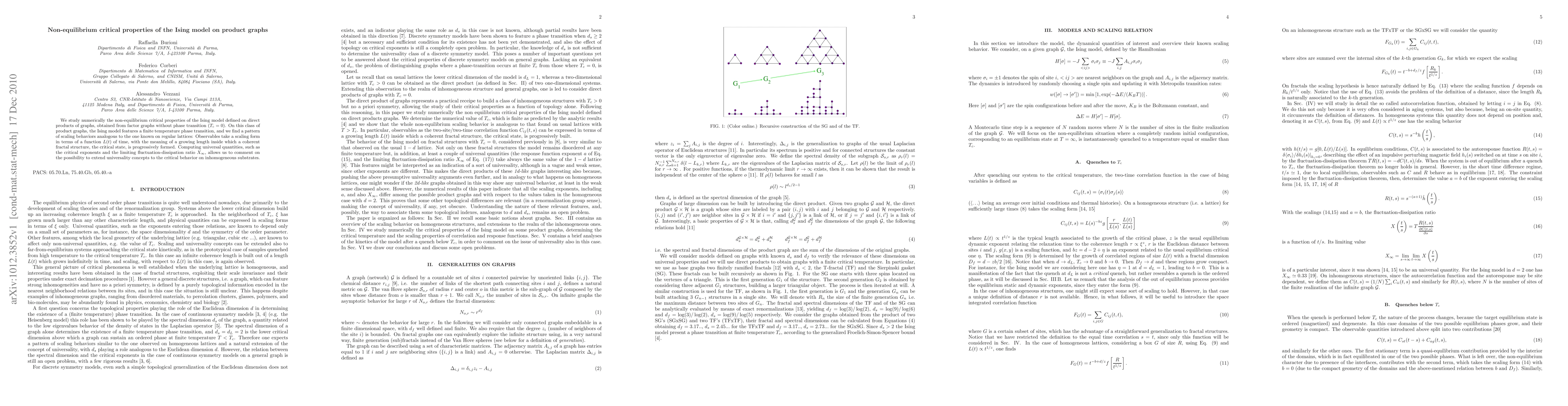 We study numerically the non-equilibrium critical properties of the Ising model defined on direct products of graphs, obtained from factor graphs without phase transition (Tc = 0). On this class of product graphs, the Ising model features a finite temperature phase transition, and we find a pattern of scaling behaviors analogous to the one known on regular lattices: Observables take a scaling form in terms of a function L(t) of time, with the meaning of a growing length inside which a coherent fractal structure, the critical state, is progressively formed. Computing universal quantities, such as the critical exponents and the limiting fluctuation-dissipation ratio X_\infty, allows us to comment on the possibility to extend universality concepts to the critical behavior on inhomogeneous substrates.
