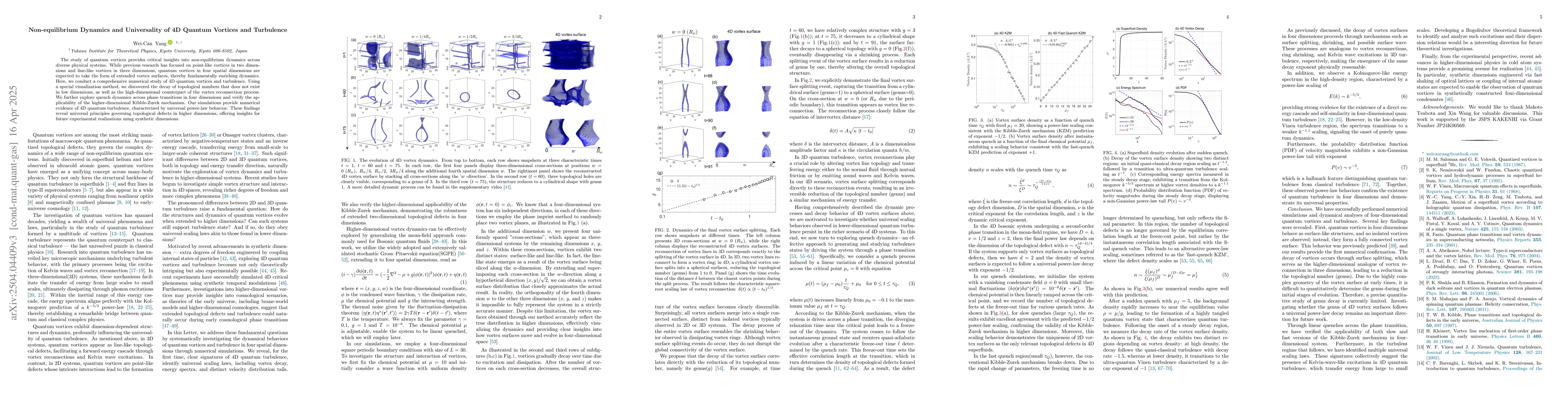 The paper presents a novel numerical study of 4D quantum vortices and turbulence, uncovering new dynamics and universality principles.