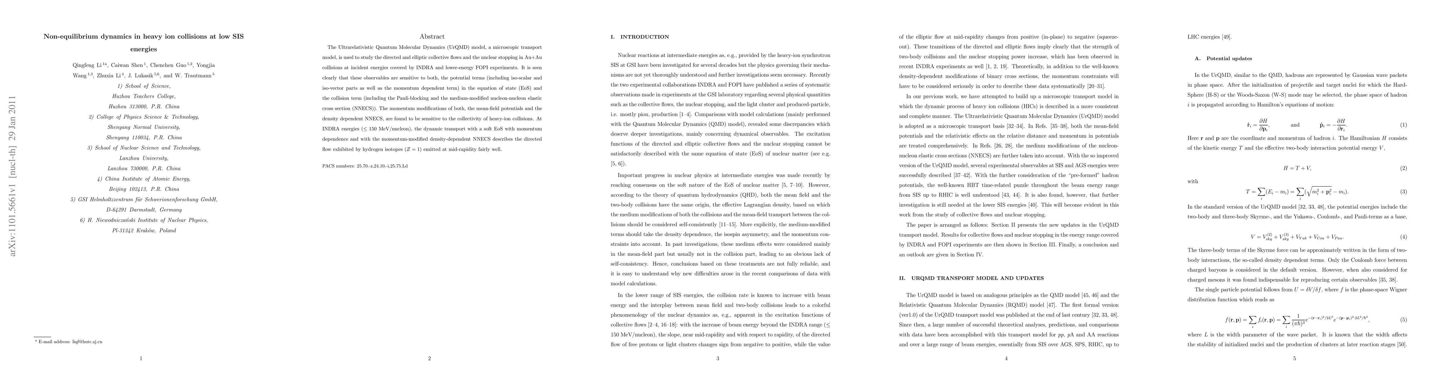 The Ultrarelativistic Quantum Molecular Dynamics (UrQMD) model, a microscopic transport model, is used to study the directed and elliptic collective flows and the nuclear stopping in Au+Au collisions at incident energies covered by INDRA and lower-energy FOPI experiments. It is seen clearly that these observables are sensitive to both, the potential terms (including iso-scalar and iso-vector parts as well as the momentum dependent term) in the equation of state (EoS) and the collision term (including the Pauli-blocking and the medium-modified nucleon-nucleon elastic cross section (NNECS)). The momentum modifications of both, the mean-field potentials and the density dependent NNECS, are found to be sensitive to the collectivity of heavy-ion collisions. At INDRA energies ($\le 150$~MeV/nucleon), the dynamic transport with a soft EoS with momentum dependence and with the momentum-modified density-dependent NNECS describes the directed flow exhibited by hydrogen isotopes ($Z=1$) emitted at mid-rapidity fairly well.