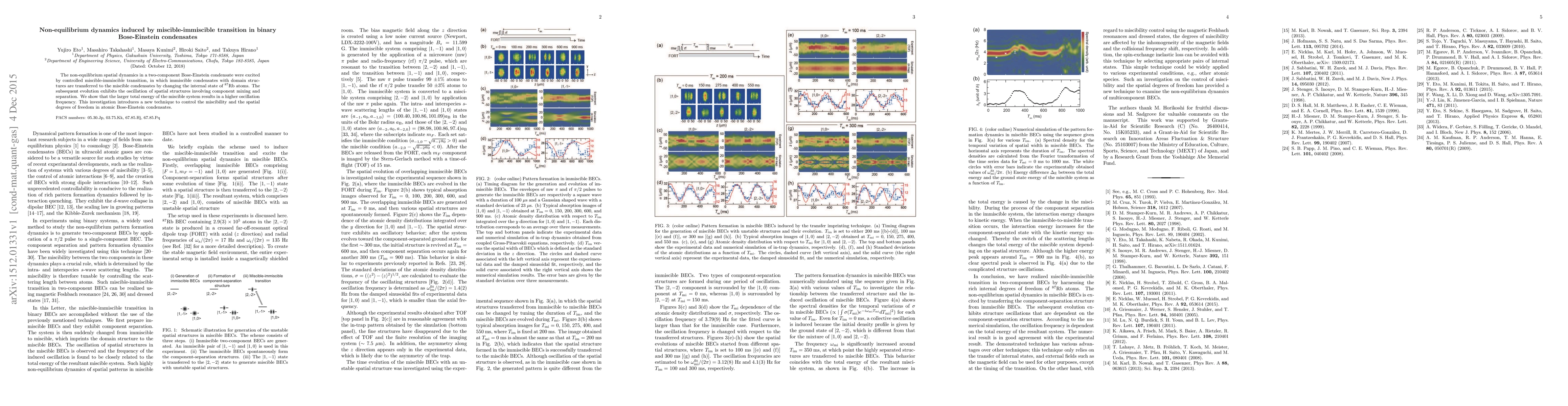 This study investigates the non-equilibrium dynamics in binary Bose-Einstein condensates induced by a controlled miscible-immiscible transition, revealing oscillations of spatial structures with higher frequencies in miscible systems due to increased total energy. This research provides a novel method for manipulating miscibility and spatial dynamics in atomic condensates.