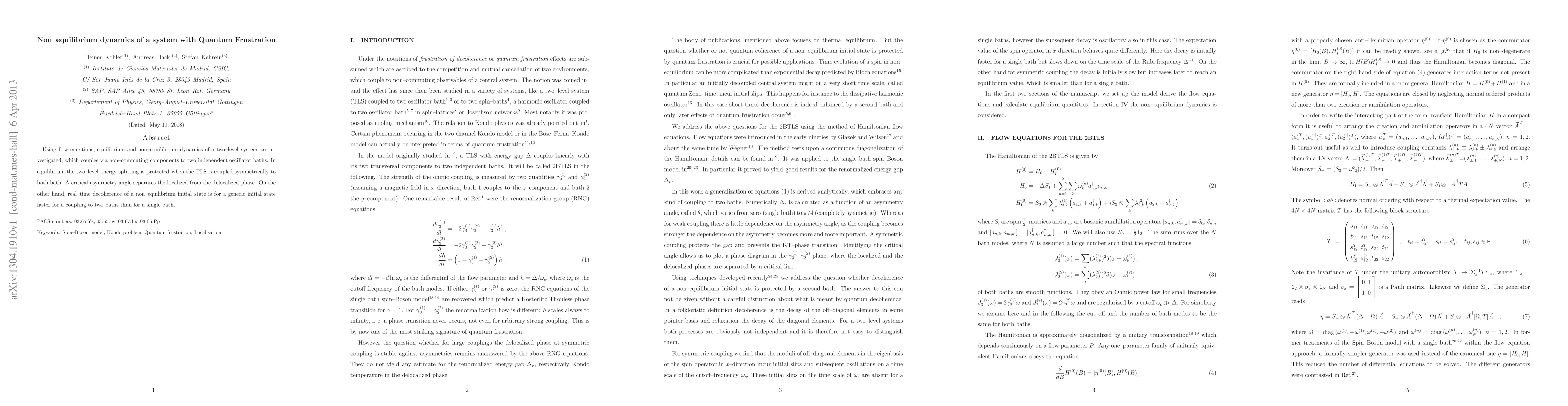 Using flow equations, equilibrium and non-equilibrium dynamics of a two-level system are investigated, which couples via non-commuting components to two independent oscillator baths. In equilibrium the two-level energy splitting is protected when the TLS is coupled symmetrically to both bath. A critical asymmetry angle separates the localized from the delocalized phase. On the other hand, real-time decoherence of a non-equilibrium initial state is for a generic initial state faster for a coupling to two baths than for a single bath.