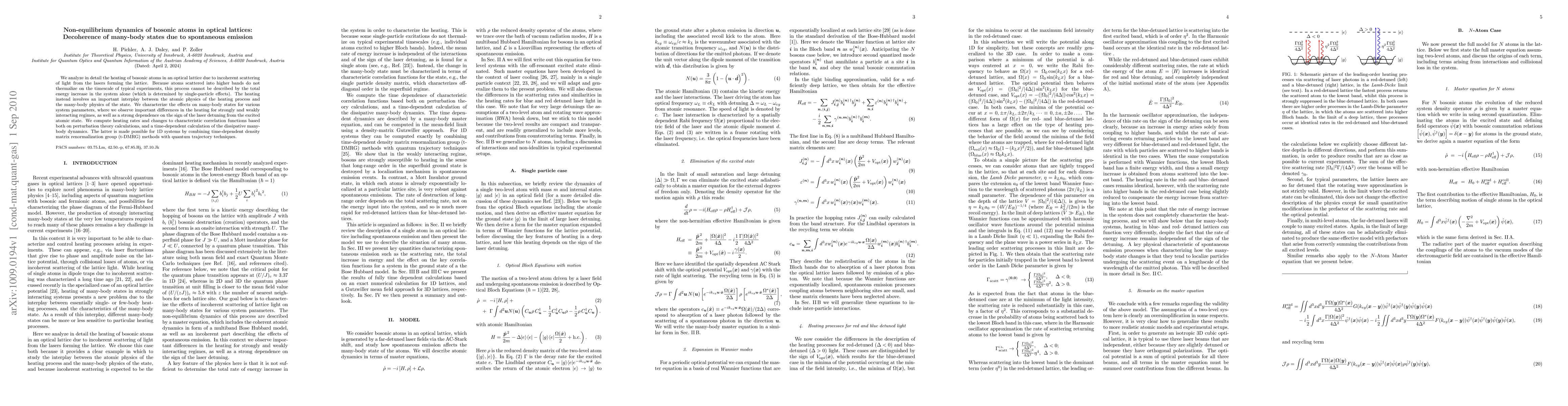 This paper investigates the non-equilibrium dynamics of bosonic atoms in optical lattices, focusing on the decoherence of many-body states due to spontaneous emission. It reveals complex heating mechanisms that cannot be explained by total energy increase alone, highlighting significant differences in heating behavior between strongly and weakly interacting regimes.