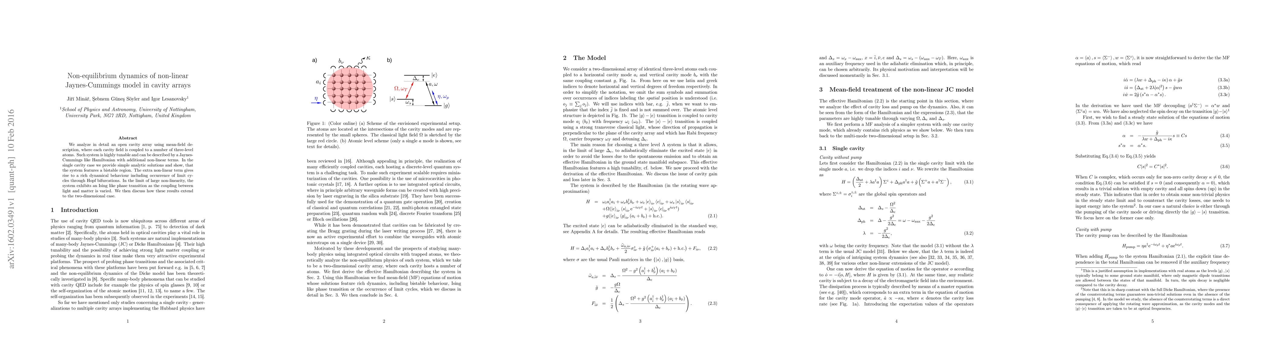 A study on a tunable cavity array system reveals rich dynamical behavior through Hopf bifurcations and an Ising-like phase transition in the presence of non-linear terms.