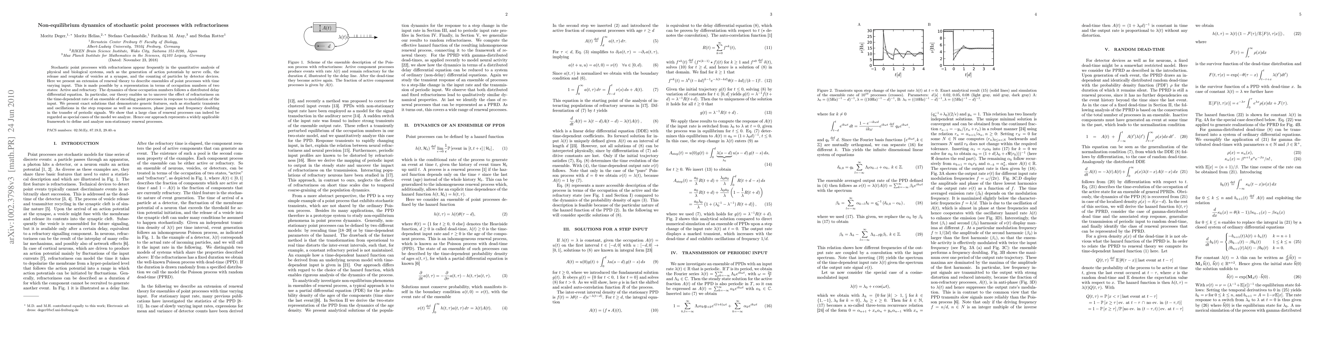 This paper extends renewal theory to analyze stochastic point processes with refractoriness, using occupation numbers of active and refractory states. It reveals the impact of refractoriness on the response rate of point processes to varying inputs, showcasing phenomena like oscillations and resonances.