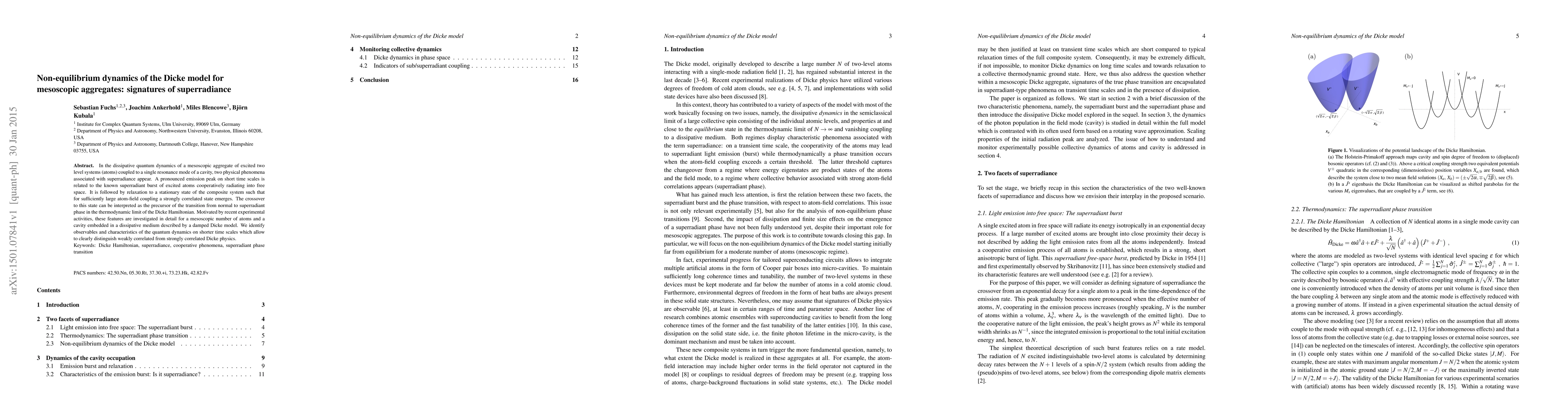 This paper investigates the non-equilibrium dynamics of a mesoscopic aggregate of atoms coupled to a cavity, focusing on the phenomena of superradiance. It identifies a pronounced emission peak followed by relaxation to a strongly correlated state, highlighting the transition from normal to superradiant phase.