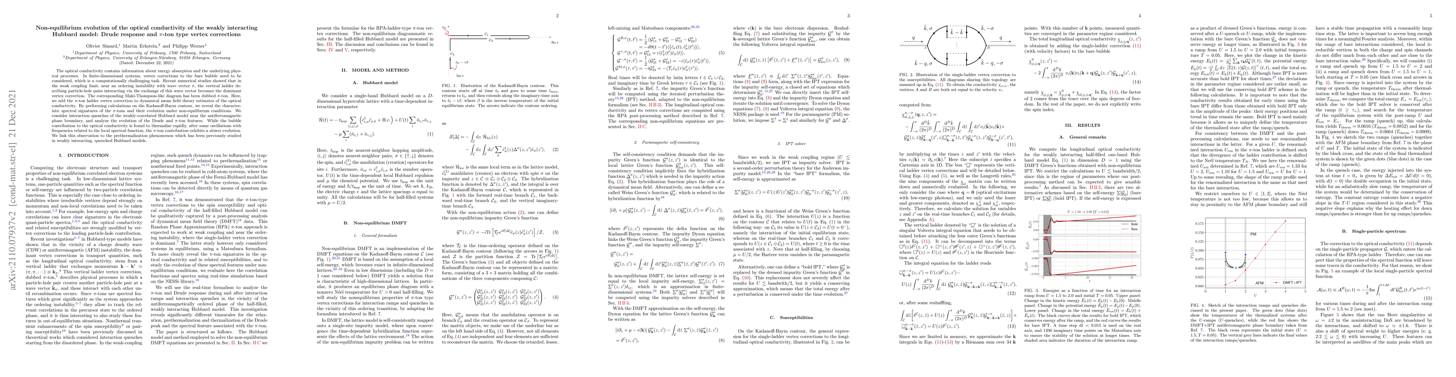 The optical conductivity contains information about energy absorption and the underlying physical processes. In finite-dimensional systems, vertex corrections to the bare bubble need to be considered, which is a computationally challenging task. Recent numerical studies showed that in the weak coupling limit, near an ordering instability with wave vector $\pi$, $\pi$-tons (or Maki-Thompson diagrams) yield the most relevant vertex corrections. This provides a route for including vertex corrections into, for example, dynamical mean field theory estimates of the optical conductivity. By implementing calculations on the Kadanoff-Baym contour, we reveal the characteristic spectral signatures of the $\pi$-tons and their evolution under non-equilibrium conditions. We consider interaction quenches of the weakly-correlated Hubbard model near the antiferromagnetic phase boundary, and analyze the evolution of the Drude and $\pi$-ton features. While the bubble contribution to the optical conductivity is found to thermalize rapidly, after some oscillations with frequencies related to the local spectral function, the $\pi$-ton contribution exhibits a slower evolution. We link this observation to the prethermalization phenomenon which has been previously studied in weakly interacting, quenched Hubbard models.