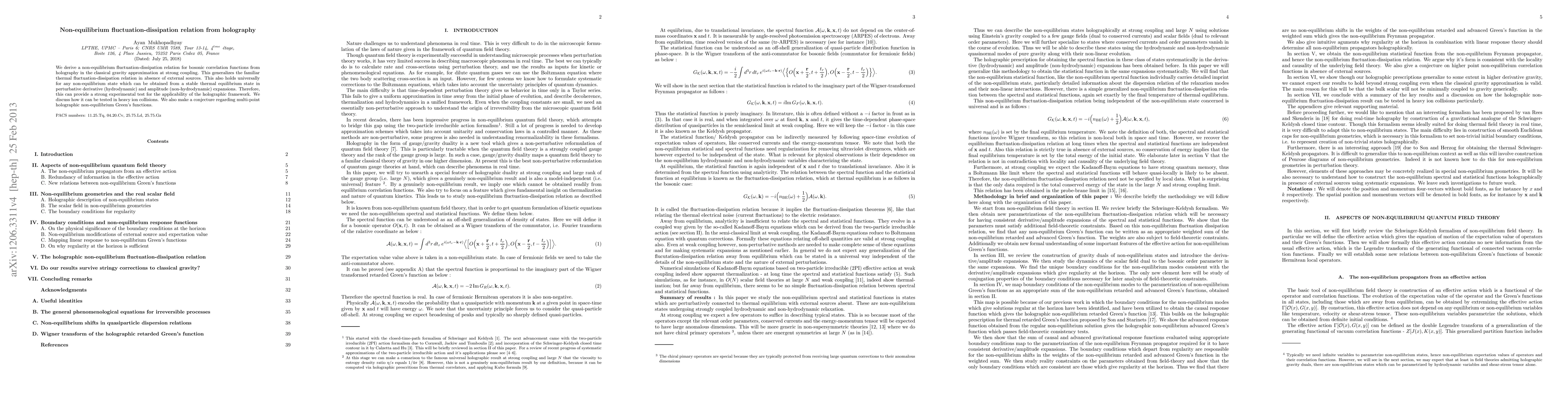This paper derives a non-equilibrium fluctuation-dissipation relation from holography in the classical gravity approximation at strong coupling, generalizing the thermal relation and applying to both hydrodynamic and non-hydrodynamic expansions. It proposes a testable framework for experimental validation in heavy ion collisions.
