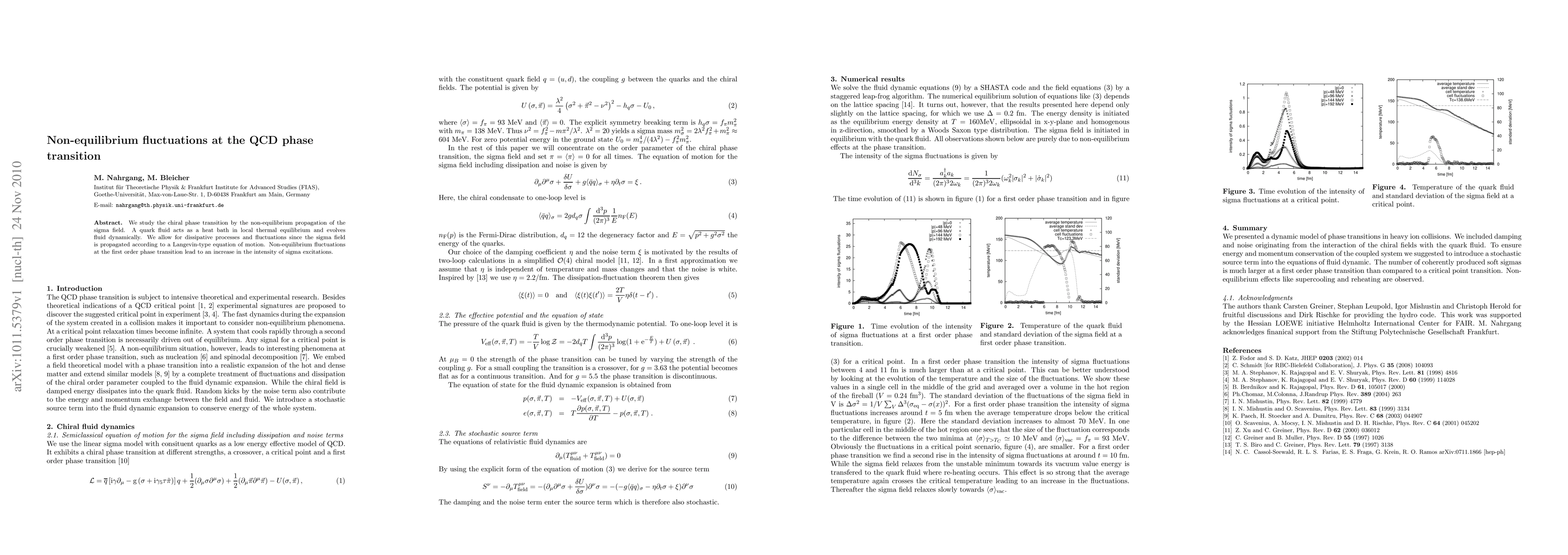 We study the chiral phase transition by the non-equilibrium propagation of the sigma field. A quark fluid acts as a heat bath in local thermal equilibrium and evolves fluid dynamically. We allow for dissipative processes and fluctuations since the sigma field is propagated according to a Langevin-type equation of motion. Non-equilibrium fluctuations at the first order phase transition lead to an increase in the intensity of sigma excitations.