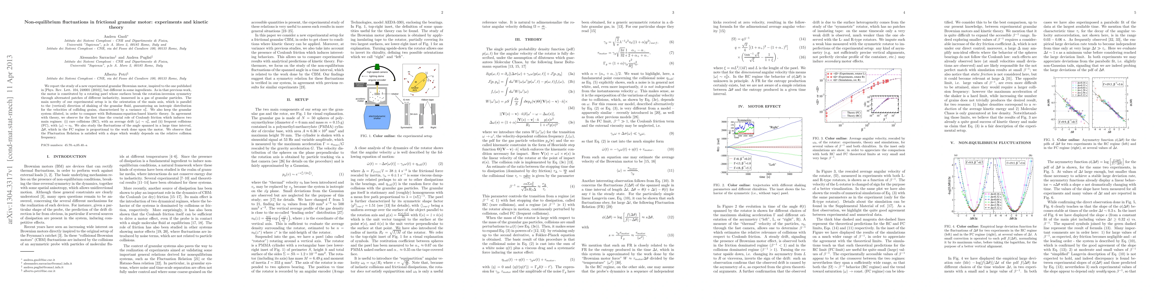 We report the study of a new experimental granular Brownian motor, inspired to the one published in [Phys. Rev. Lett. 104, 248001 (2010)], but different in some ingredients. As in that previous work, the motor is constituted by a rotating pawl whose surfaces break the rotation-inversion symmetry through alternated patches of different inelasticity, immersed in a gas of granular particles. The main novelty of our experimental setup is in the orientation of the main axis, which is parallel to the (vertical) direction of shaking of the granular fluid, guaranteeing an isotropic distribution for the velocities of colliding grains, characterized by a variance $v_0^2$. We also keep the granular system diluted, in order to compare with Boltzmann-equation-based kinetic theory. In agreement with theory, we observe for the first time the crucial role of Coulomb friction which induces two main regimes: (i) rare collisions (RC), with an average drift $\ < \omega \ > \sim v_0^3$, and (ii) frequent collisions (FC), with $\ < \omega \ > \sim v_0$. We also study the fluctuations of the angle spanned in a large time interval, $\Delta \theta$, which in the FC regime is proportional to the work done upon the motor. We observe that the Fluctuation Relation is satisfied with a slope which weakly depends on the relative collision frequency.