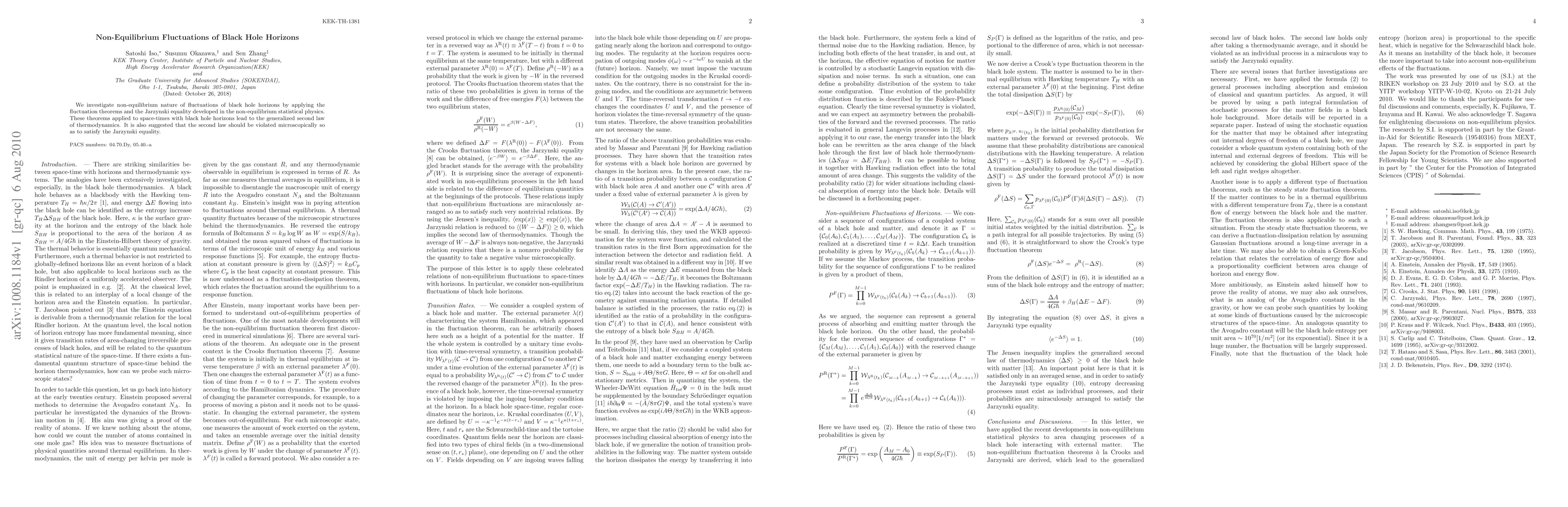 This paper explores the non-equilibrium fluctuations of black hole horizons using fluctuation theorems and the Jarzynski equality from non-equilibrium statistical physics, leading to a generalized second law of thermodynamics, which suggests microscopic violations to satisfy the Jarzynski equality.