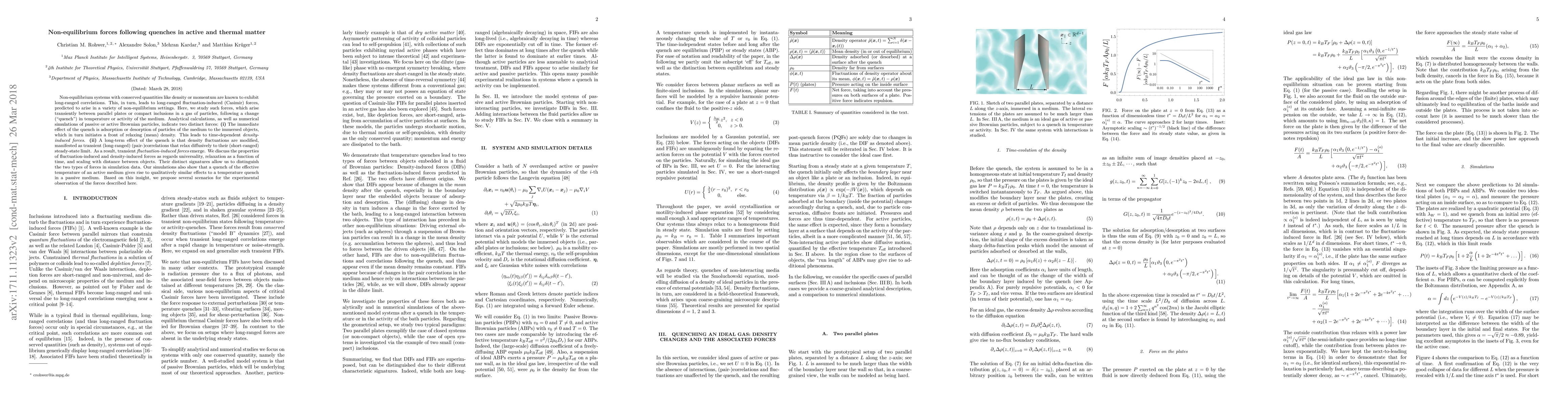 This paper investigates transient non-equilibrium forces in active and thermal matter following a quench, identifying two types: density-induced forces from immediate particle adsorption/desorption and fluctuation-induced forces from modified density fluctuations. The study uses analytical and numerical methods to explore their properties and proposes experimental scenarios for observation.