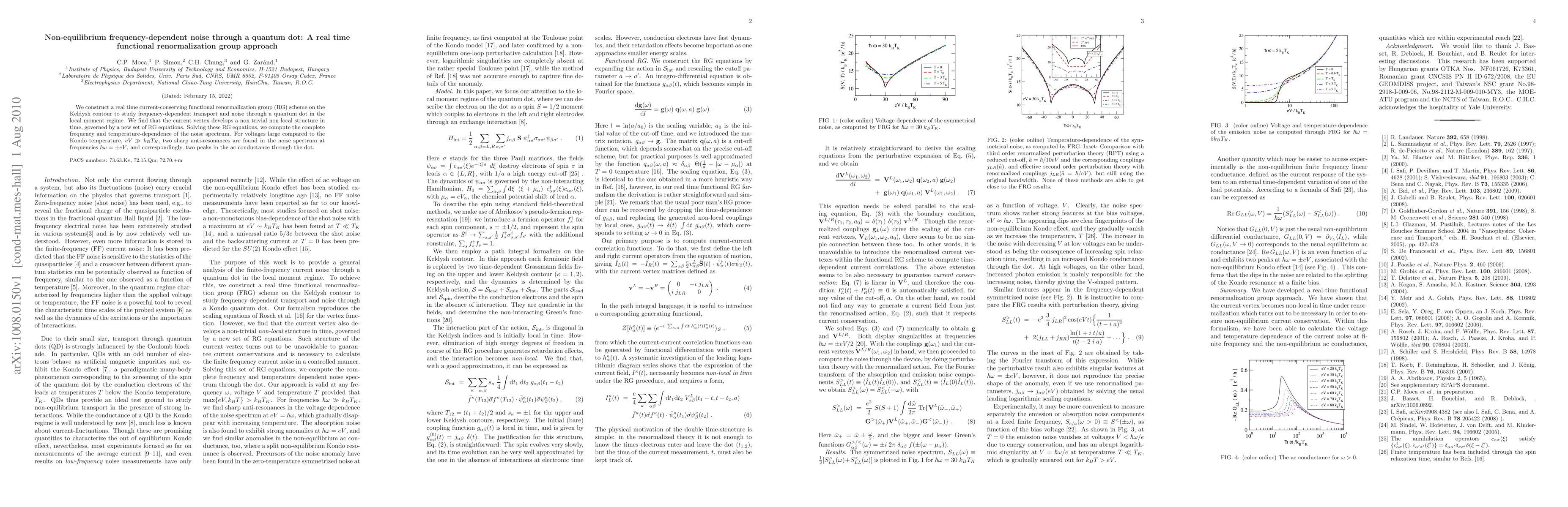 This paper develops a real-time functional renormalization group approach to study frequency-dependent transport and noise through a quantum dot. It reveals a non-trivial non-local structure in time for the current vertex and identifies sharp anti-resonances in the noise spectrum at frequencies corresponding to applied voltages, alongside peaks in ac conductance.