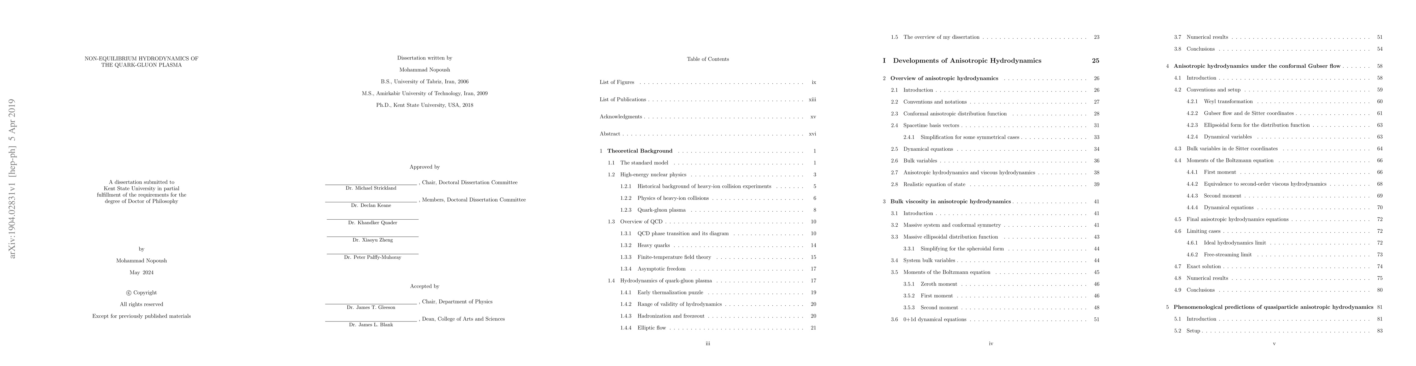 My dissertation is about the formulation and application of anisotropic hydrodynamics as a successful non-equilibrium hydrodynamics model for studying the QGP. For this purpose, I introduce the basic conformal anisotropic hydrodynamics formalism and then explain the ways we included realistic features (bulk degree of freedom, quasiparticle implementation of realistic equation of state, more realistic collisional kernel), to make it a suitable hydrodynamics model for studying the QGP generated in heavy-ion collisions. For verification of our model we have compared the evolution of model parameters predicted by aHydro and vHydro, with exact solution of the Boltzmann equation. However, the system is not conformal and the aHydro needed to be improved to include a realistic prescription for the equation of state which takes care of non-ideal effect in the dynamics. I have then designed a novel method for implementing the realistic equation of state (provided by lattice QCD) in the aHydro formalism. This model, called the quasiparticle aHydro model, integrates the non-conformal effects in the aHydro model. The non-conformal effects are due to strong interactions of plasma constituents which leads to temperature-dependence of the particles' effective mass in the system. Based on the quasiparticle picture, we have developed the quasiparticle aHydro (aHydroQP) model. We have then compared the phenomenological predictions of the aHydroQP model with experimental observations. Comparisons illustrate a high level of consistency between our model and the experimental data. Finally, I have calculated the quark self-energy in an anisotropic QGP. The quark self-energy is important because it encodes the way quarks gain interactional mass while in the hot QGP. I also have presented the calculation of gluon self-energy in hard loop approximation in an anisotropic QGP.