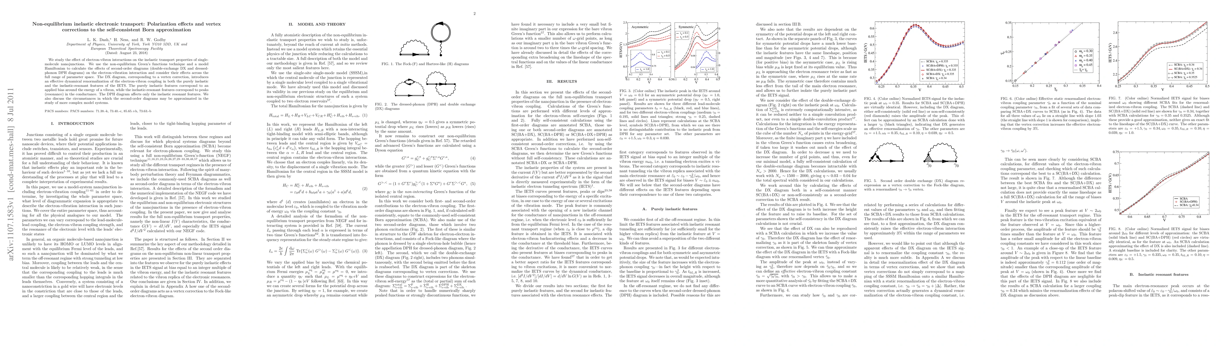This paper investigates electron-vibron interactions in single-molecule nanojunctions using non-equilibrium Green's functions and model Hamiltonians. It highlights the impact of second-order diagrams, specifically double-exchange and dressed-phonon diagrams, on electron-vibration coupling and their influence on inelastic electronic transport, including dynamical renormalization effects and resonance peaks in conductance.
