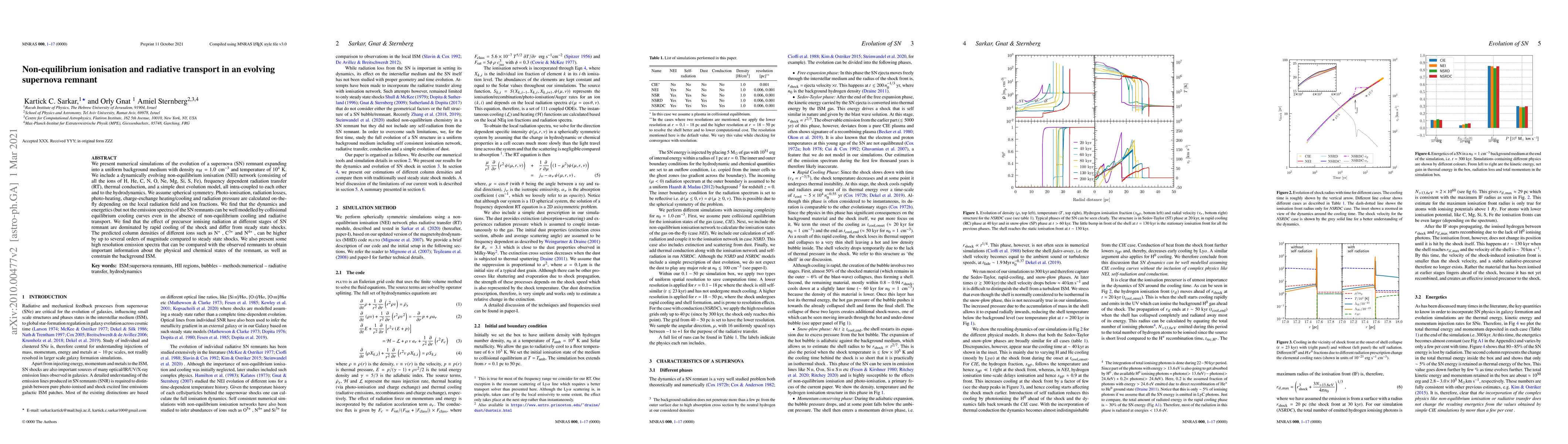 Numerical simulations of a supernova remnant show that it can be modeled using collisional equilibrium cooling curves even without considering non-equilibrium ionization and radiative transport, leading to predicted column densities of ions that are several orders of magnitude higher than in steady-state shocks.
