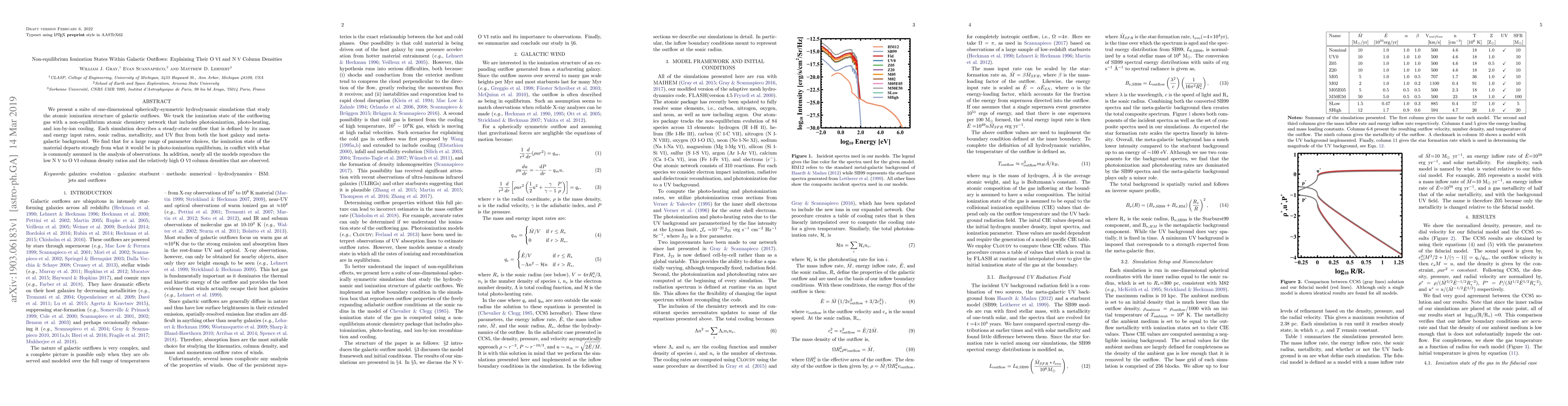 This paper uses hydrodynamic simulations to explore the ionization states in galactic outflows, finding that non-equilibrium processes significantly affect the observed O VI and N V column densities, challenging the common assumption of photo-ionization equilibrium. The models successfully reproduce the observed low N V to O VI column density ratios and high O VI column densities.