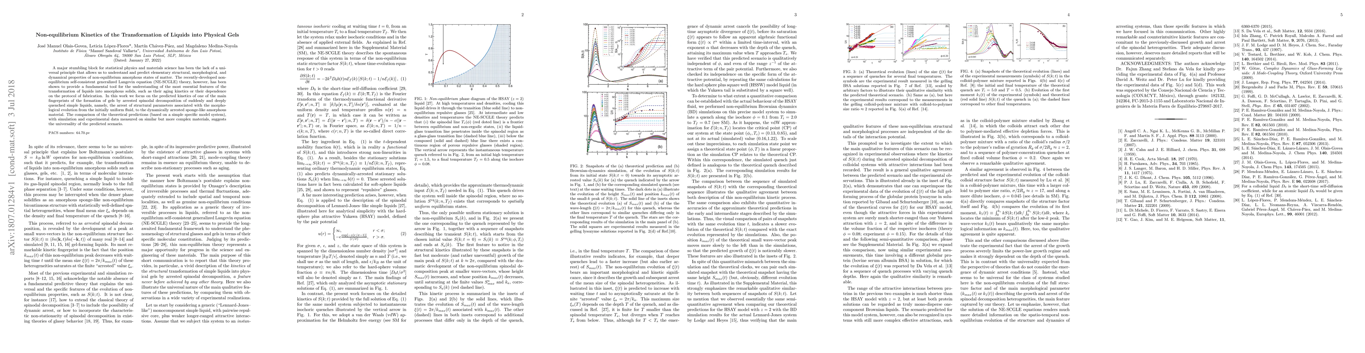 This paper explores the kinetics of liquid-to-gel transformation using the non-equilibrium self-consistent generalized Langevin equation (NE-SCGLE) theory, predicting the arrest of structural parameters during the aging process. The study suggests that the NE-SCGLE theory can universally describe the morphological evolution of amorphous materials formed via arrested spinodal decomposition.