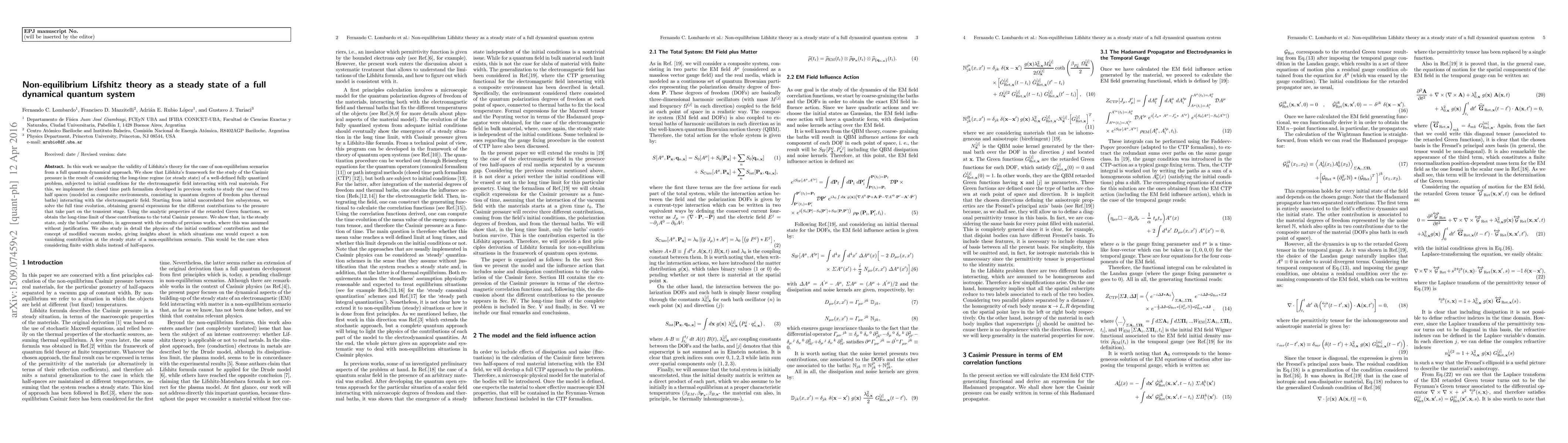 In this work we analyze the validity of Lifshitz's theory for the case of non-equilibrium scenarios from a full quantum dynamical approach. We show that Lifshitz's framework for the study of the Casimir pressure is the result of considering the long-time regime (or steady state) of a well-defined fully quantized problem, subjected to initial conditions for the electromagnetic field interacting with real materials. For this, we implement the closed time path formalism developed in previous works to study the case of two half spaces (modeled as composite environments, consisting in quantum degrees of freedom plus thermal baths) interacting with the electromagnetic field. Starting from initial uncorrelated free subsystems, we solve the full time evolution, obtaining general expressions for the different contributions to the pressure that take part on the transient stage. Using the analytic properties of the retarded Green functions, we obtain the long-time limit of these contributions to the total Casimir pressure. We show that, in the steady state, only the baths' contribute, in agreement with the results of previous works, where this was assumed without justification. We also study in detail the physics of the initial conditions' contribution and the concept of modified vacuum modes, giving insights about in which situations one would expect a non vanishing contribution at the steady state of a non-equilibrium scenario. This would be the case when considering finite width slabs instead of half-spaces.