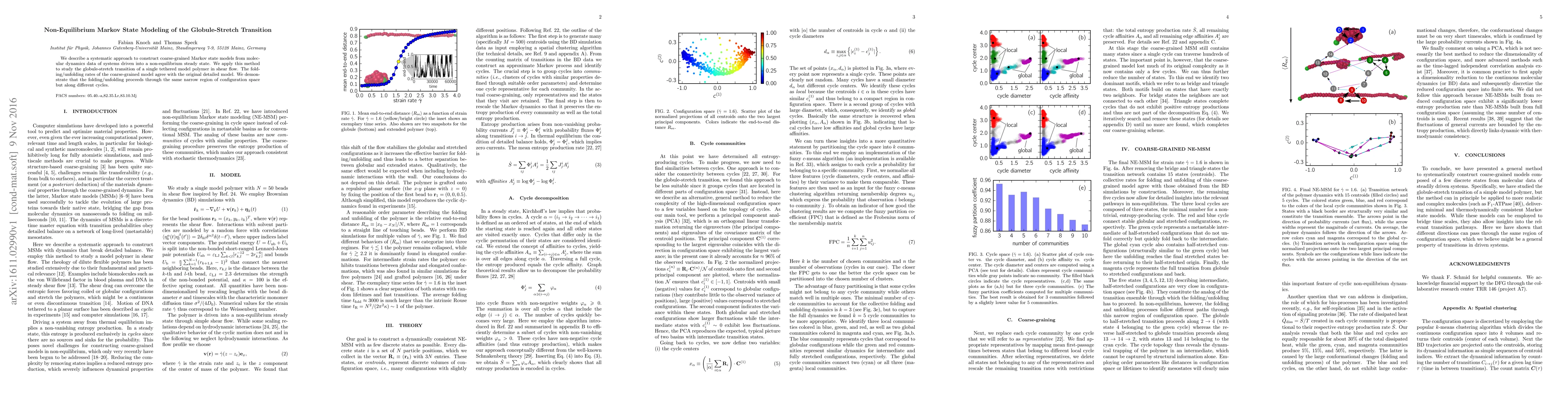 We describe a systematic approach to construct coarse-grained Markov state models from molecular dynamics data of systems driven into a non-equilibrium steady state. We apply this method to study the globule-stretch transition of a single tethered model polymer in shear flow. The folding/unfolding rates of the coarse-grained model agree with the original detailed model. We demonstrate that the folding/unfolding proceeds through the same narrow region of configuration space but along different cycles.