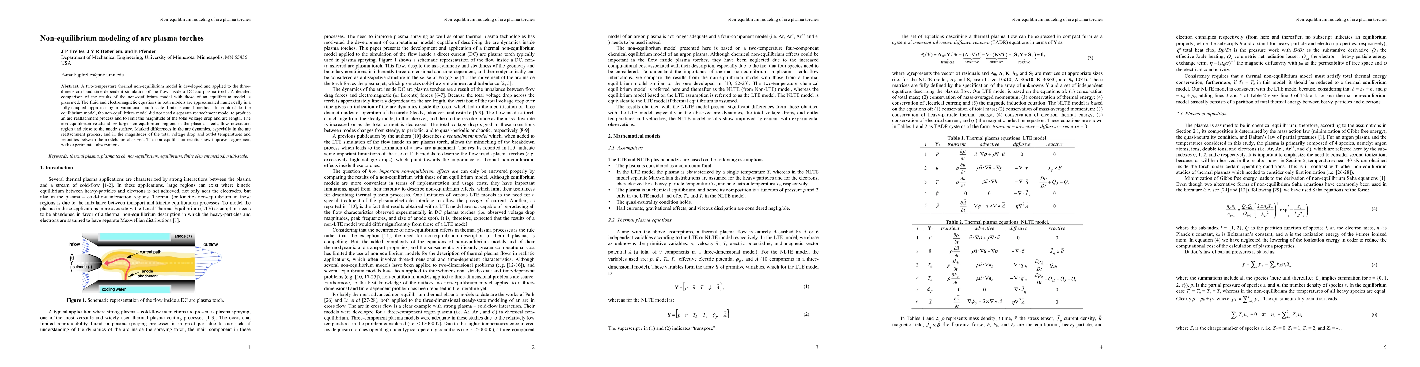 This paper presents a two-temperature non-equilibrium model for simulating DC arc plasma torches, showing significant differences in arc dynamics and plasma behavior compared to equilibrium models, with better agreement with experimental data. The non-equilibrium model eliminates the need for a separate reattachment model.