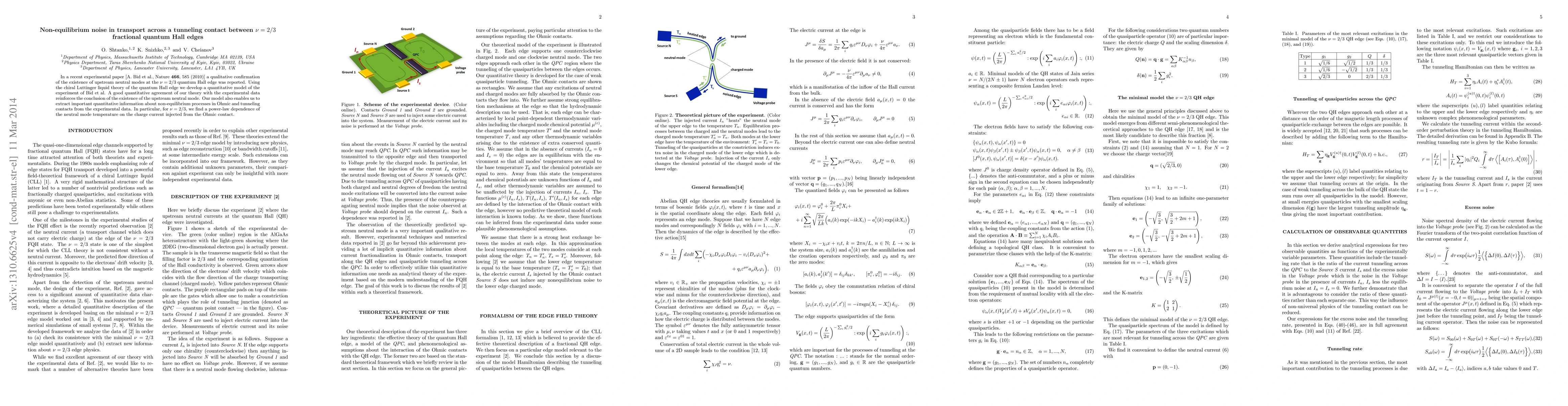 In a recent experimental paper [1] a qualitative confirmation of the existence of upstream neutral modes at $\nu = 2/3$ quantum Hall edge was reported. Using the chiral Luttinger liquid theory of quantum Hall edge we develop a quantitative model of the experiment [1]. A good quantitative agreement of our theory with the experimental data reinforces the conclusion of existence of the upstream neutral mode. Our model also enables us to extract important quantitative information about non-equilibrium processes in Ohmic and tunneling contacts from the experimental data. In particular, for $\nu = 2/3$, we find a power-law dependence of the neutral mode temperature on the charge current injected from the Ohmic contact.