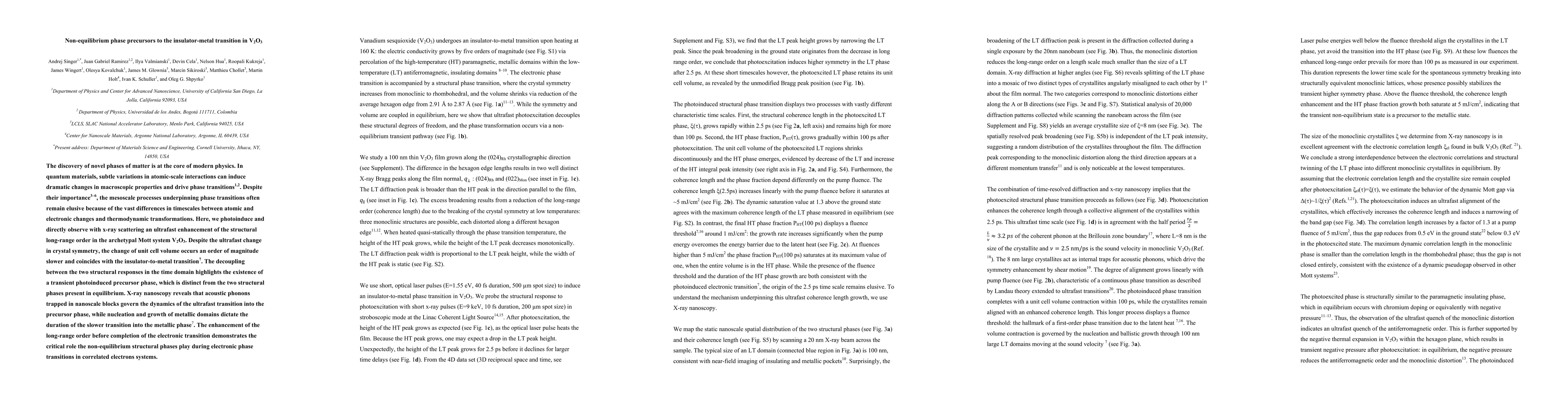 Researchers discovered a transient photoinduced precursor phase in V2O3 that precedes its insulator-to-metal transition, revealing the role of non-equilibrium structural phases in electronic transitions.