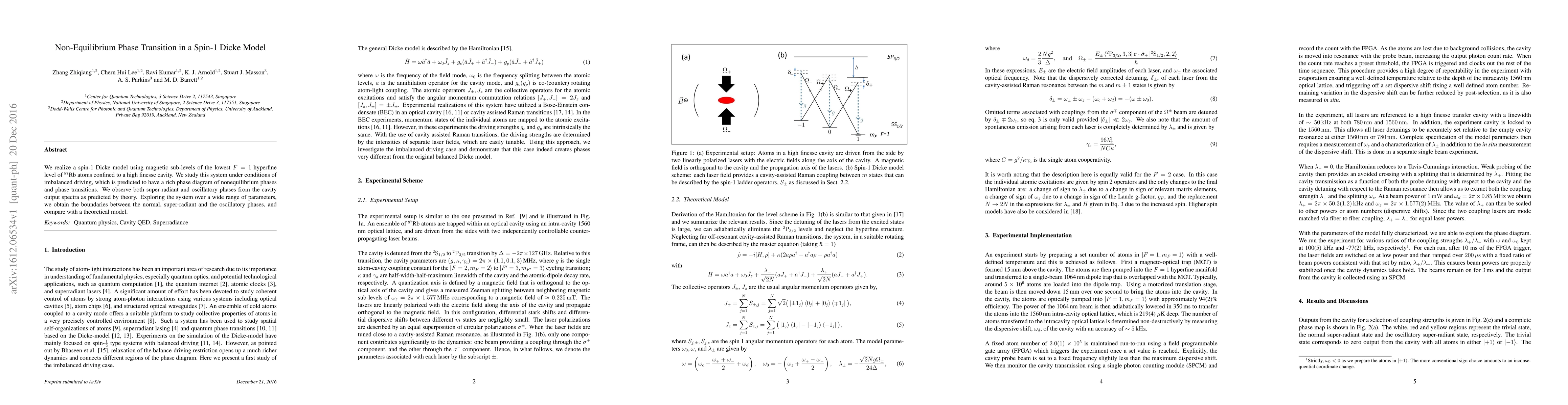 This research investigates a spin-1 Dicke model using $^{87}$Rb atoms in a high finesse cavity under imbalanced driving, observing super-radiant and oscillatory phases. The study maps out the phase boundaries and compares them with theoretical predictions.