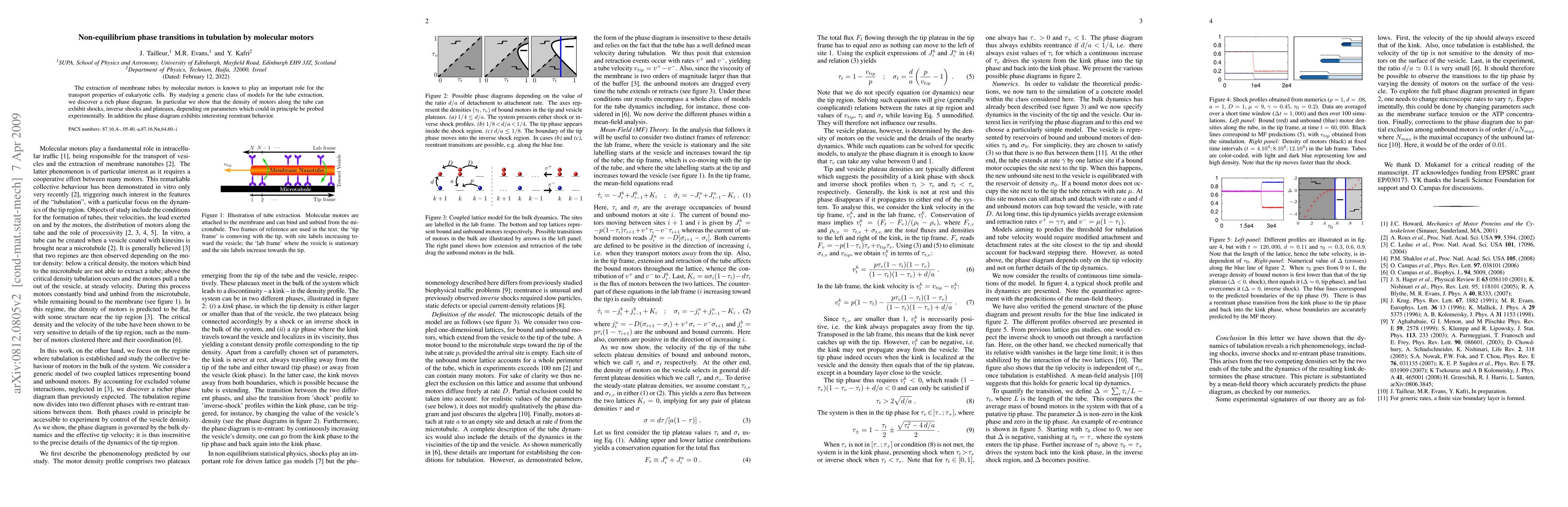 This research explores the dynamics of membrane tube extraction by molecular motors, revealing a complex phase diagram with shocks, inverse shocks, plateaux, and reentrant behavior in motor density, offering potential experimental insights into cellular transport mechanisms.