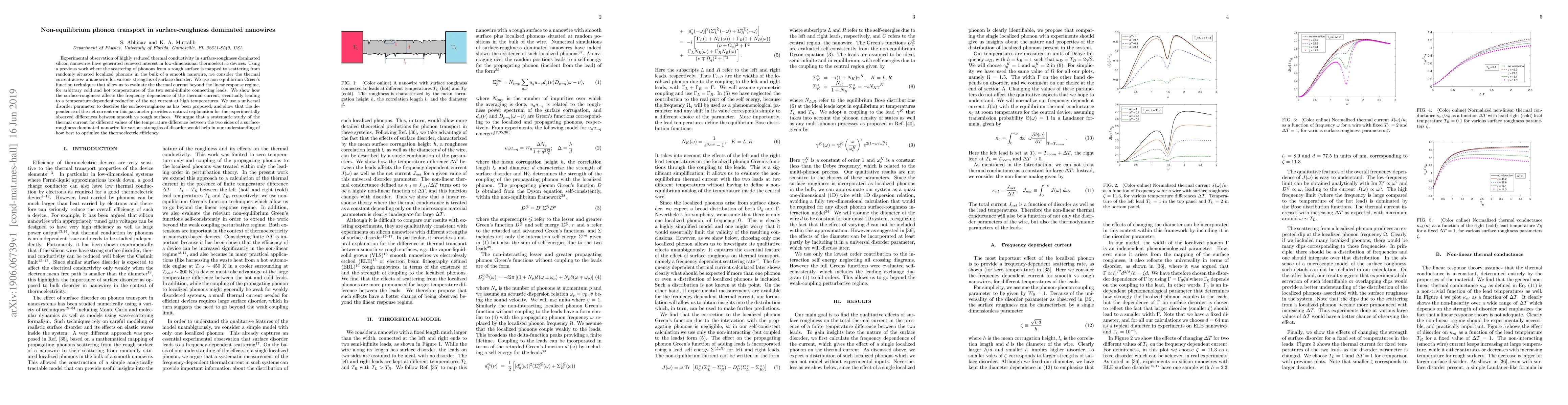 Experimental observation of highly reduced thermal conductivity in surface-roughness dominated silicon nanowires have generated renewed interest in low-dimensional thermoelectric devices. Using a previous work where the scattering of phonons from a rough surface is mapped to scattering from randomly situated localized phonons in the bulk of a smooth nanowire, we consider the thermal current across a nanowire for various strengths of surface disorder. We use non-equilibrium Green's function techniques that allow us to evaluate the thermal current beyond the linear response regime, for arbitrary cold and hot temperatures of the two semi-infinite connecting leads. We show how the surface-roughness affects the frequency dependence of the thermal current, eventually leading to a temperature dependent reduction of the net current at high temperatures. We use a universal disorder parameter to describe the surface-roughness as has been proposed, and show that the dependence of the net current on this parameter provides a natural explanation for the experimentally observed differences between smooth vs rough surfaces. We argue that a systematic study of the thermal current for different values of the temperature difference between the two sides of a surface-roughness dominated nanowire for various strengths of disorder would help in our understanding of how best to optimize the thermoelectric efficiency.