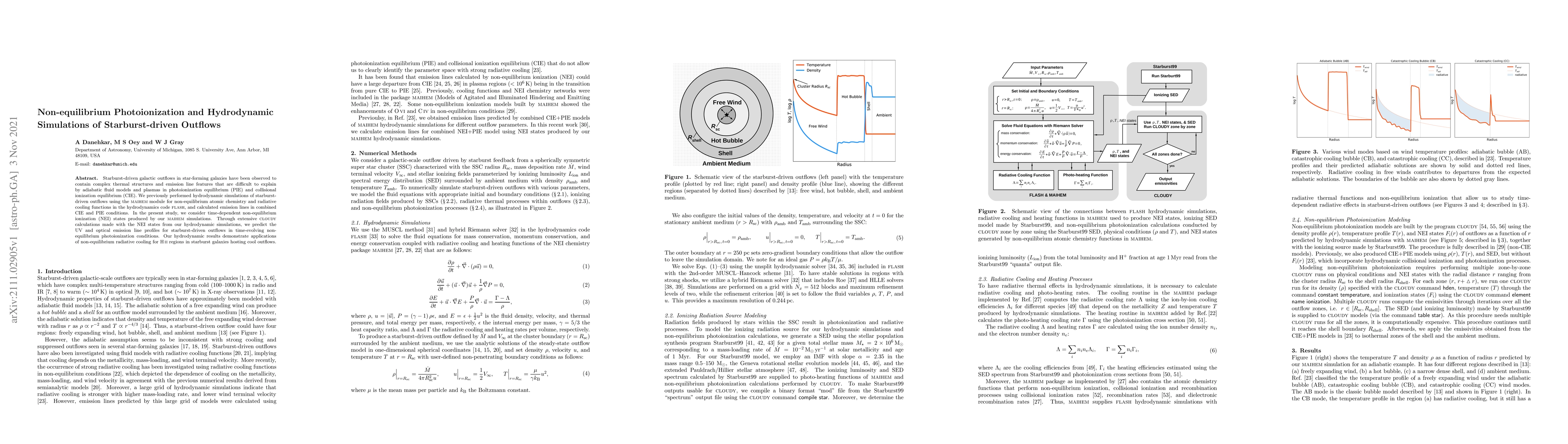 This paper investigates the complex thermal structures and emission lines in starburst-driven galactic outflows using hydrodynamic simulations that incorporate non-equilibrium photoionization. The study predicts UV and optical emission line profiles in evolving non-equilibrium conditions, highlighting the importance of non-equilibrium radiative cooling for H II regions in starburst galaxies.