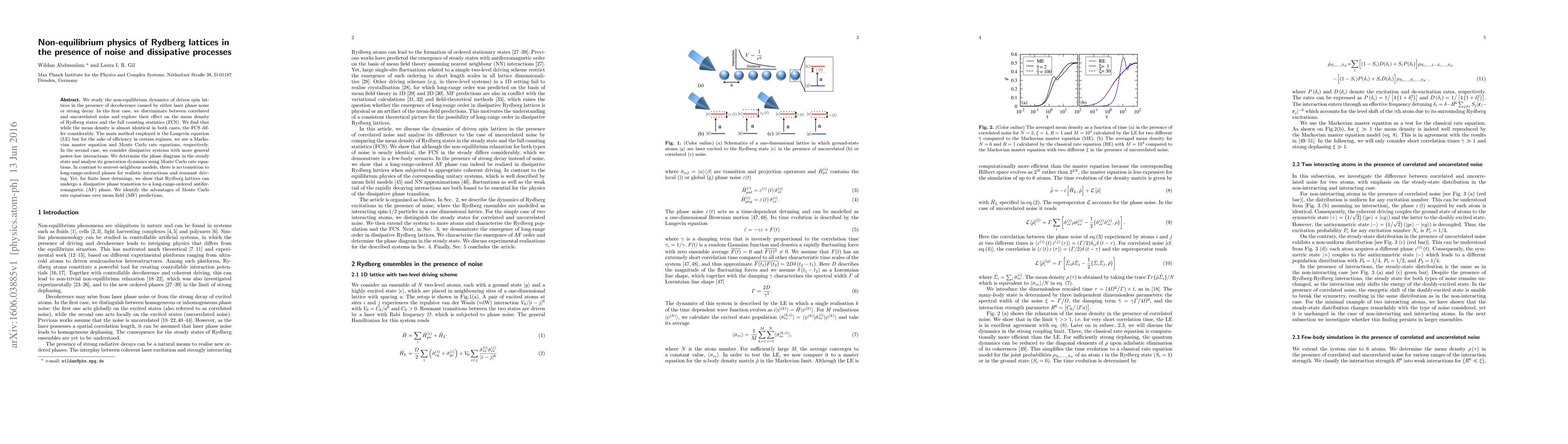 This research explores non-equilibrium dynamics in driven spin lattices affected by decoherence, distinguishing laser phase noise impacts via Langevin equations and Markovian master equations. It also examines dissipative systems with power-law interactions, finding no long-range order for realistic interactions and resonant driving, but a dissipative phase transition to an antiferromagnetic phase with finite laser detunings. Monte Carlo rate equations outperform mean-field predictions in this context.