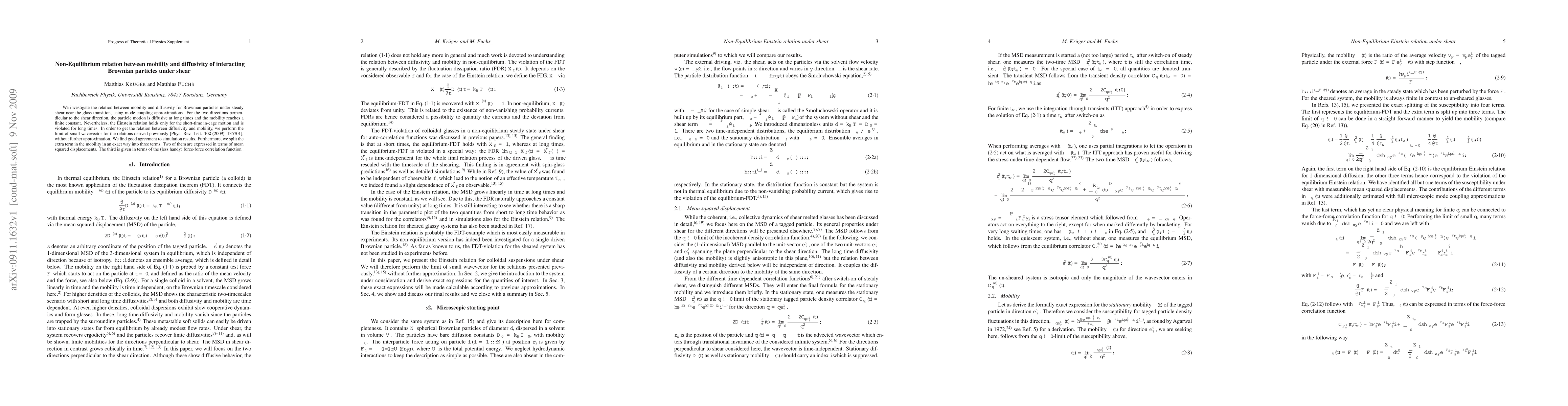 We investigate the relation between mobility and diffusivity for Brownian particles under steady shear near the glass transition, using mode coupling approximations. For the two directions perpendicular to the shear direction, the particle motion is diffusive at long times and the mobility reaches a finite constant. Nevertheless, the Einstein relation holds only for the short-time in-cage motion and is violated for long times. In order to get the relation between diffusivity and mobility, we perform the limit of small wavevector for the relations derived previously [Phys. Rev. Lett. 102 (2009), 135701], without further approximation. We find good agreement to simulation results. Furthermore, we split the extra term in the mobility in an exact way into three terms. Two of them are expressed in terms of mean squared displacements. The third is given in terms of the (less handy) force-force correlation function.