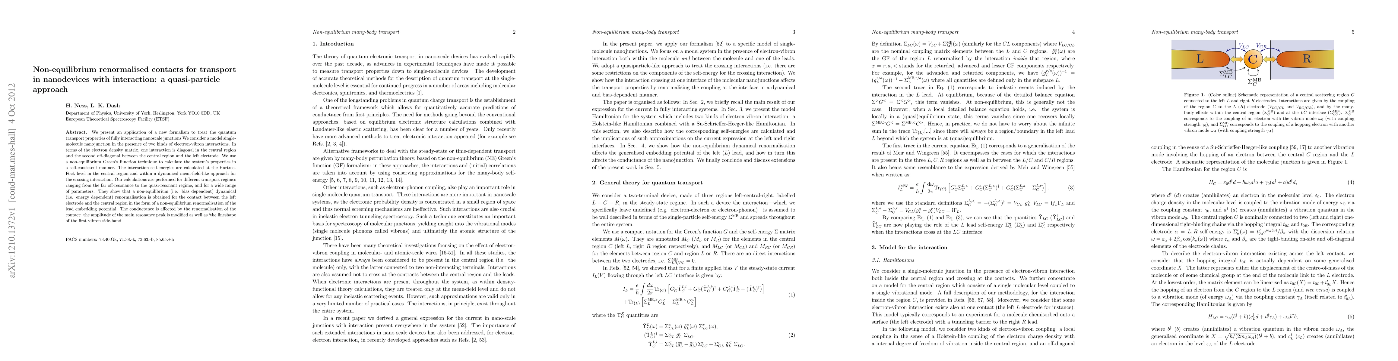 We present an application of a new formalism to treat the quantum transport properties of fully interacting nanoscale junctions. We consider a model single-molecule nanojunction in the presence of two kinds of electron-vibron interactions. In terms of the electron density matrix, one interaction is diagonal in the central region and the second off-diagonal between the central region and the left electrode. We use a non-equilibrium Green's function technique to calculate the system's properties in a self-consistent manner. The interaction self-energies are calculated at the Hartree-Fock level in the central region and within a dynamical mean-field-like approach for the crossing interaction. Our calculations are performed for different transport regimes ranging from the far off-resonance to the quasi-resonant regime, and for a wide range of parameters. They show that a non-equilibrium (i.e. bias dependent) dynamical (i.e. energy dependent) renormalisation is obtained for the contact between the left electrode and the central region in the form of a non-equilibrium renormalisation of the lead embedding potential. The conductance is affected by the renormalisation of the contact: the amplitude of the main resonance peak is modified as well as `the lineshape of the first vibron side-band.