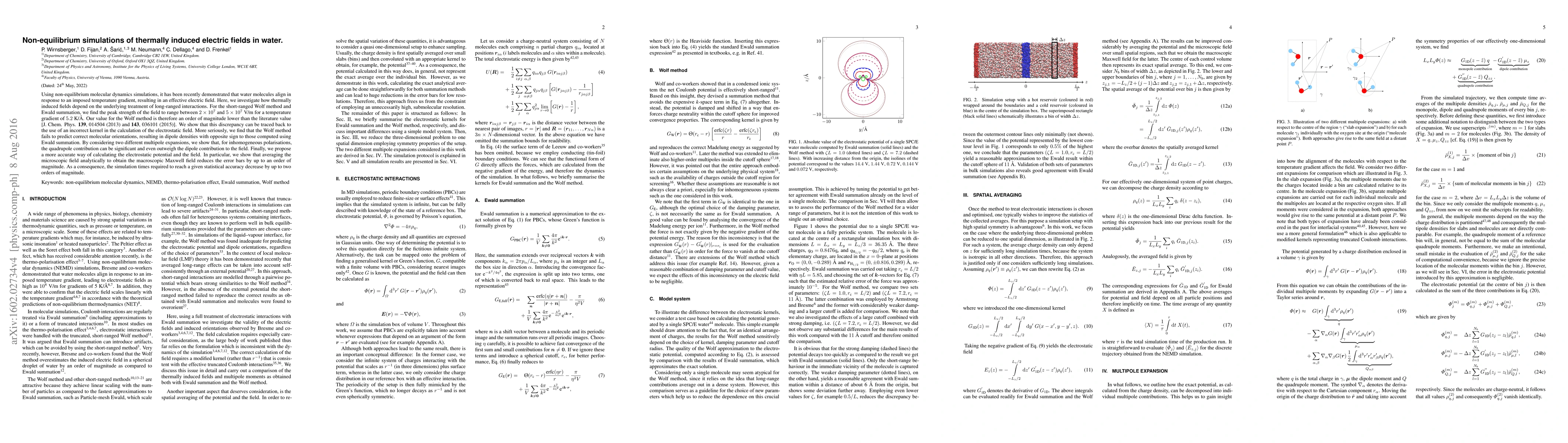 Using non-equilibrium molecular dynamics simulations, it has been recently demonstrated that water molecules align in response to an imposed temperature gradient, resulting in an effective electric field. Here, we investigate how thermally induced fields depend on the underlying treatment of long-ranged interactions. For the short-ranged Wolf method and Ewald summation, we find the peak strength of the field to range between $2 \times 10^7$ and $5 \times 10^7~\text{V/m}$ for a temperature gradient of $5.2~\text{K/}\unicode{x212B}$. Our value for the Wolf method is therefore an order of magnitude lower than the literature value [J. Chem. Phys. 139, 014504 (2013) and 143, 036101 (2015)]. We show that this discrepancy can be traced back to the use of an incorrect kernel in the calculation of the electrostatic field. More seriously, we find that the Wolf method fails to predict correct molecular orientations, resulting in dipole densities with opposite sign to those computed using Ewald summation. By considering two different multipole expansions, we show that, for inhomogeneous polarisations, the quadrupole contribution can be significant and even outweigh the dipole contribution to the field. Finally, we propose a more accurate way of calculating the electrostatic potential and the field. In particular, we show that averaging the microscopic field analytically to obtain the macroscopic Maxwell field reduces the error bars by up to an order of magnitude. As a consequence, the simulation times required to reach a given statistical accuracy decrease by up to two orders of magnitude.
