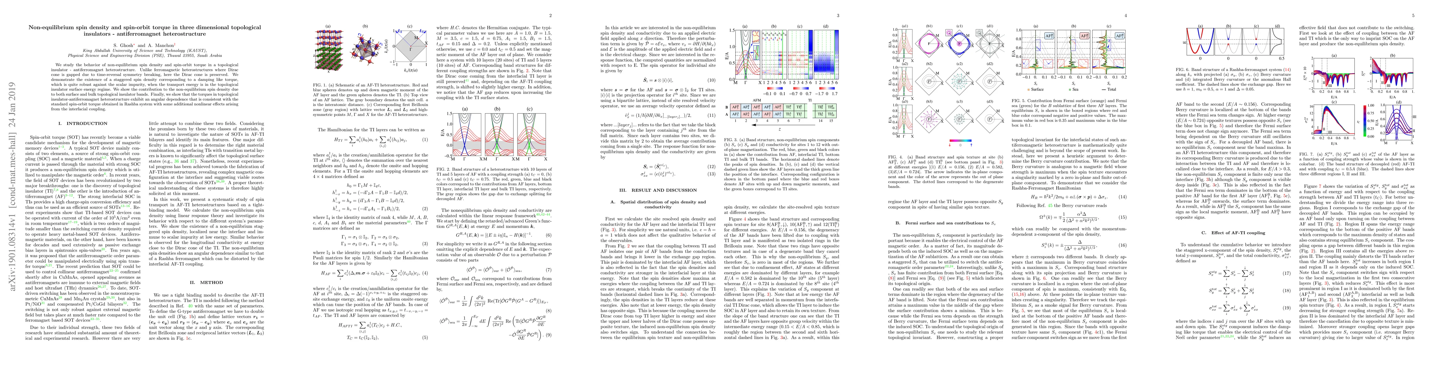 This research investigates non-equilibrium spin density and spin-orbit torque in topological insulator-antiferromagnet heterostructures, demonstrating a preserved Dirac cone and robust staggered spin density, contributing to both surface and bulk topological insulator bands, and showing angular dependence akin to standard spin-orbit torque with additional nonlinear effects due to interfacial coupling.