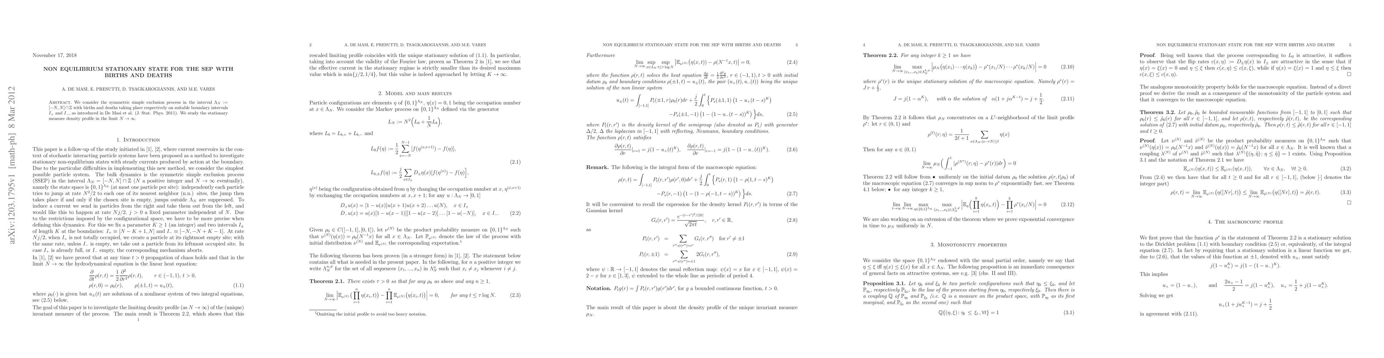The symmetric simple exclusion process with births and deaths is studied for its stationary measure density profile as N approaches infinity. The focus is on understanding the behavior of this system in a non-equilibrium stationary state.