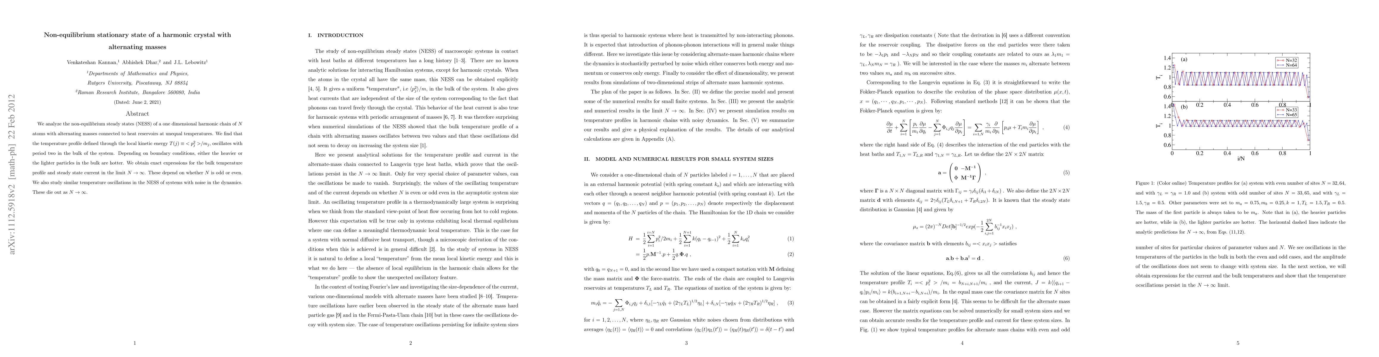 harmonic chain of $N$ atoms with alternating masses connected to heat