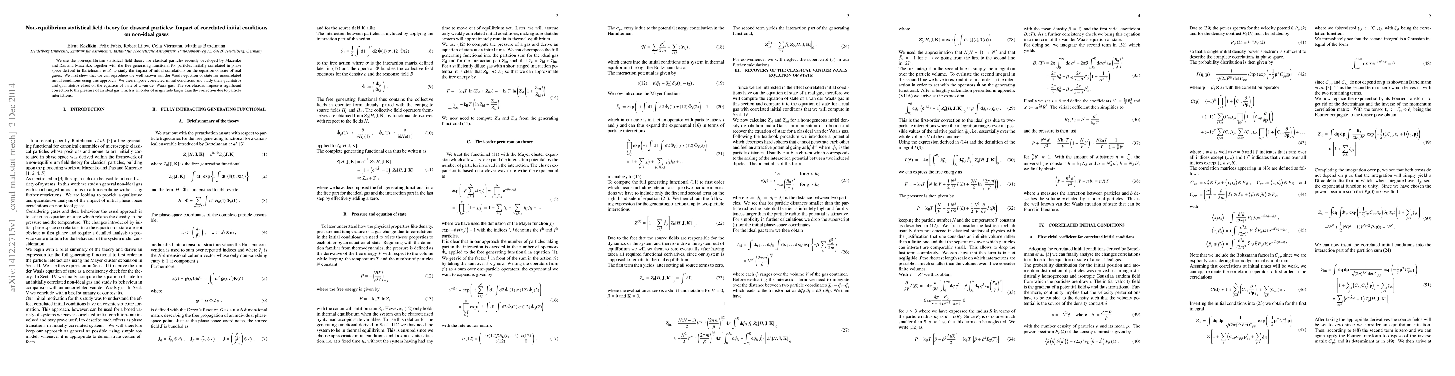 This paper employs non-equilibrium statistical field theory to investigate how correlated initial conditions affect the equation of state of non-ideal gases, demonstrating significant corrections to pressure due to these correlations, surpassing those from particle interactions.