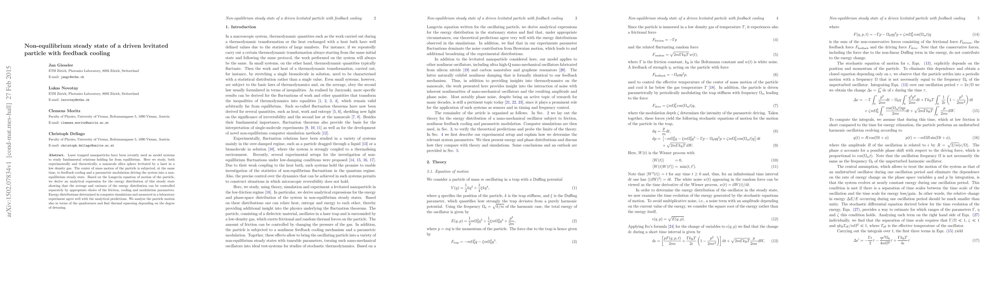 This paper investigates the non-equilibrium steady state of a levitated silica particle subjected to feedback cooling and parametric modulation. Analytical and experimental results show that the energy distribution's average and variance can be independently controlled, with simulations and experiments validating the theoretical predictions.