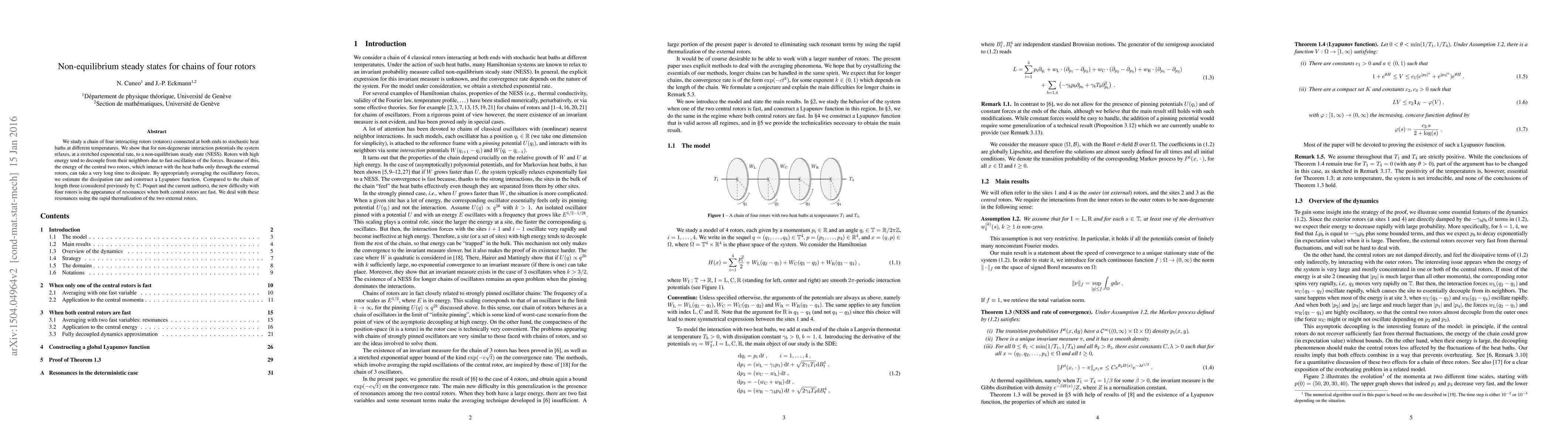 A chain of four interacting rotors relaxes to a non-equilibrium steady state at a stretched exponential rate, with high-energy rotors decoupling from neighbors and affecting dissipation rates.